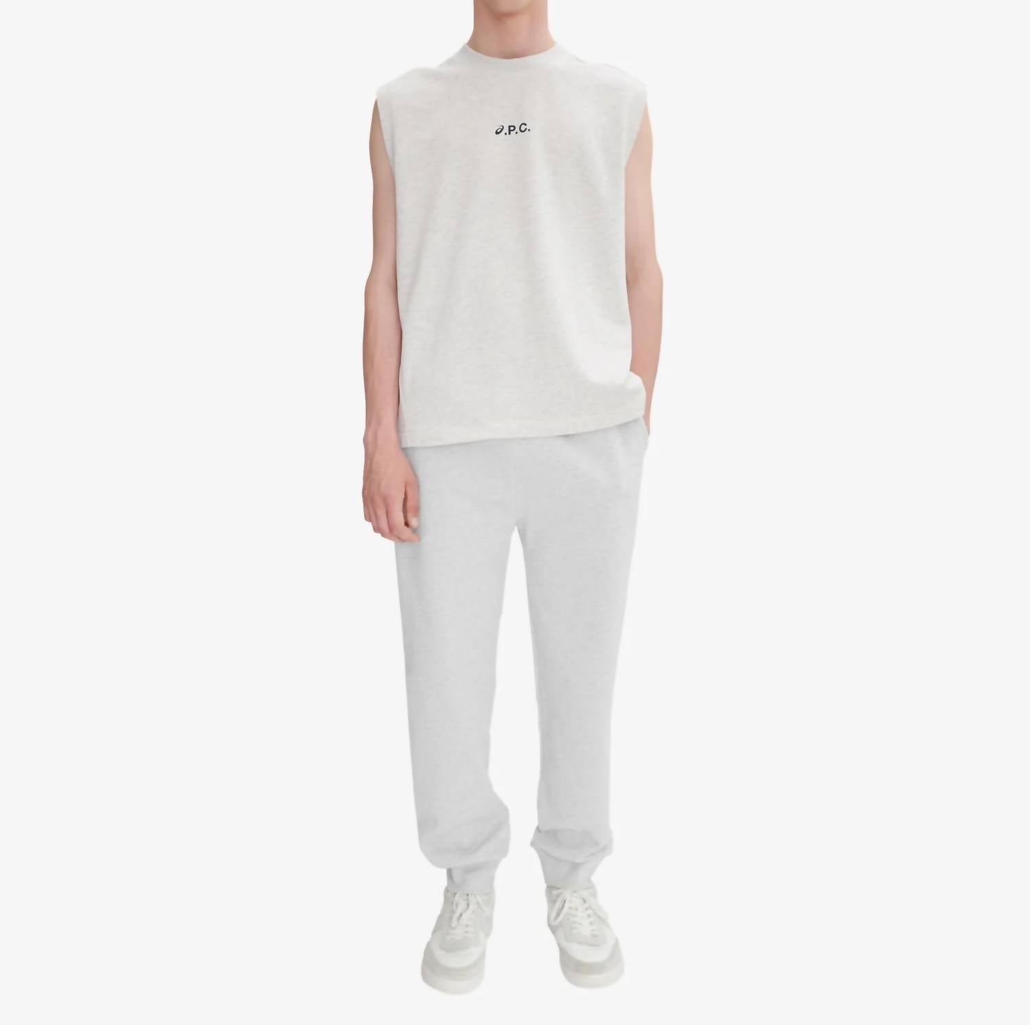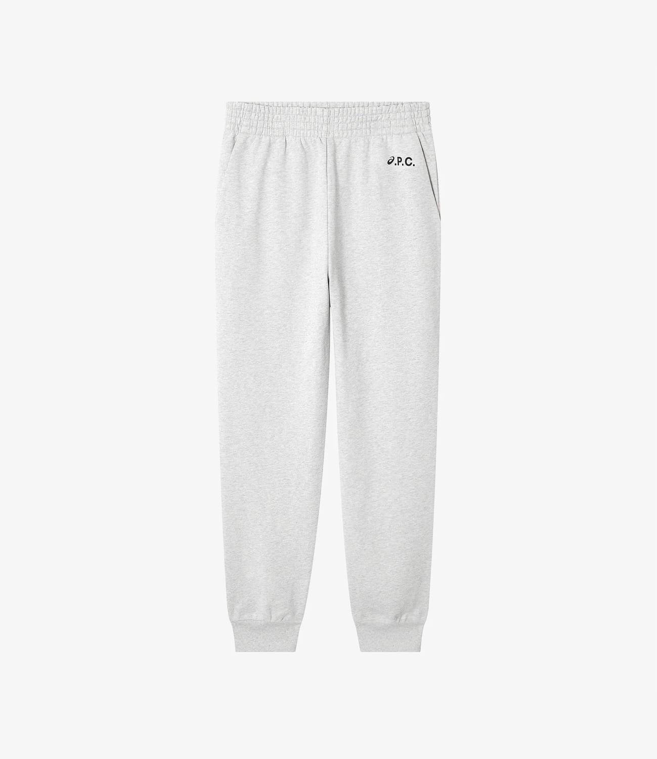 Introducing the Men's Hill Jogger Pants by A.P.C., a go-to choice for athleisure with a focus on comfort and style. Crafted from 100% organic cotton, these joggers feature a mid-rise waist with an elasticated waistband for a snug fit. Designed with a straight leg style, they offer practicality with two side pockets and one back pocket, accented by A.P.C. and Asics logos on the front left pocket. Originating from Portugal, these pants are machine washable cold (86°F), inside-out, and should be laid flat to dry, making them perfect for the fall fitness season.