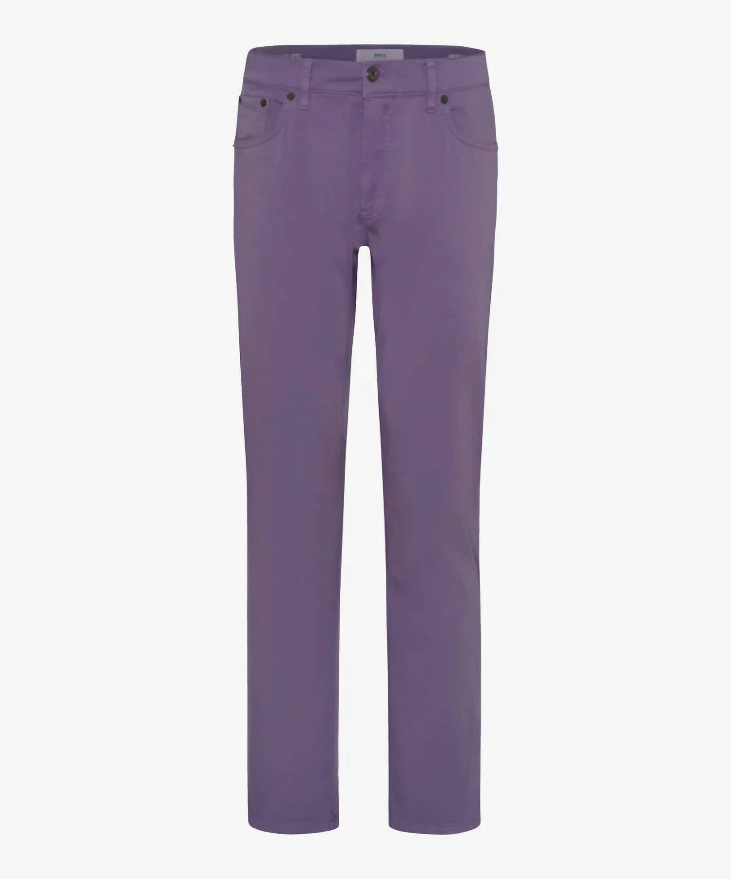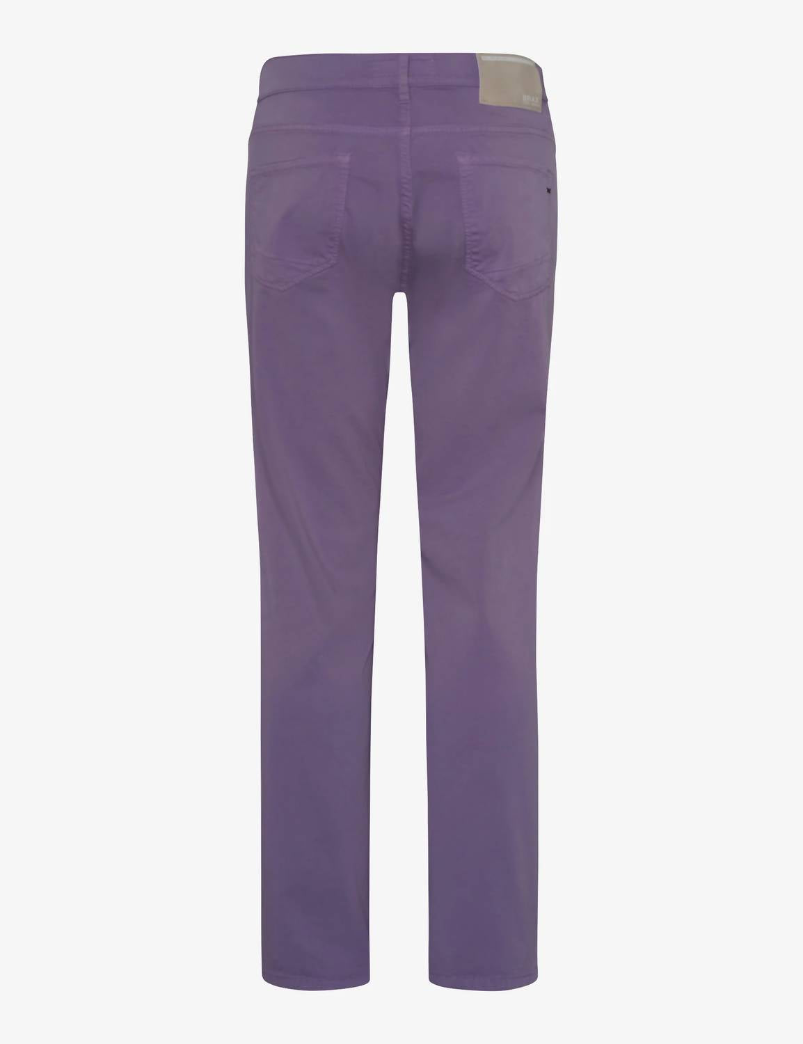 Discover the Men's Chuck Hi-flex Pants by Brax, crafted in a soft lavender hue to accentuate your summer wardrobe. These straight-leg pants feature a regular fit with a normal waist rise and convenient zip closure. Made from a skin-friendly cotton blend (79% Cotton, 19% Polyester, 2% Elastane), they offer remarkable stretch and comfort for unrestricted movement. Consisting of slit front pockets, patch back pockets, and an additional coin pocket, these pants perfectly blend workwear style with utility. Care instructions: Machine wash and tumble dry. Waist measurement for size 34/32 is 90 cm, with an inseam of 82 cm and a foot width of 38 cm. Model is wearing size 33/32 and is 188 cm tall.
