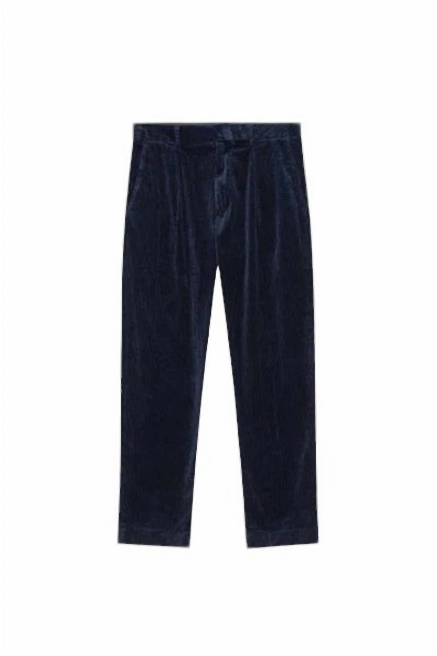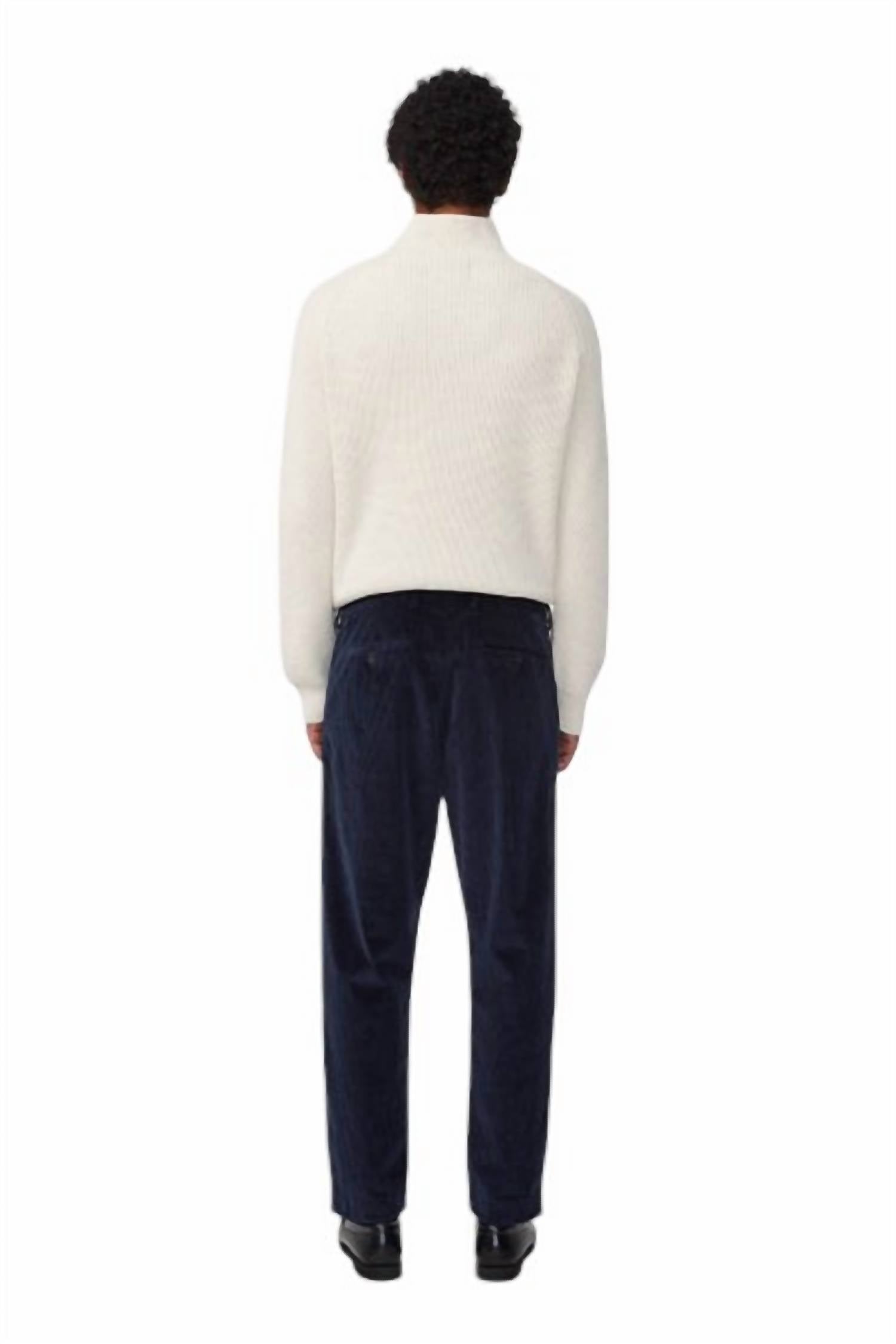 Versatile trousers with a comfortable stretch, a hidden hemm, and press folds,Relaxed fit. Mid-rise. Tapered Leg. Piece Dyed. 98% Organic Cotton 2% Elastane. Iron low temperature—only iron or steam when necessary. Immediately remove clothes from the washing machine and hang-dry them to minimize creases.
