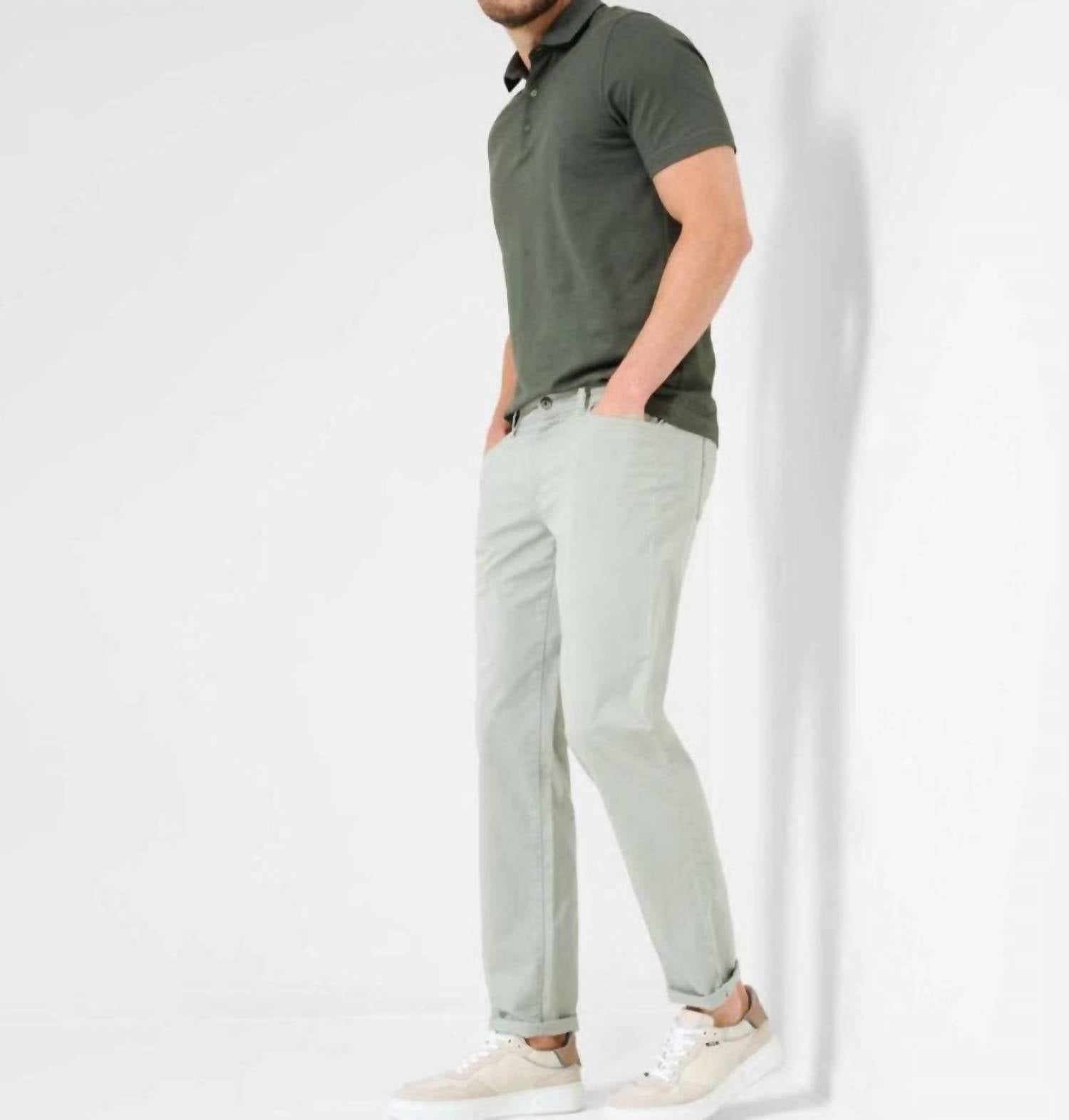 Introducing the Brax Cadiz Straight Leg Pants in a striking Avocado color, designed for the modern man who values style and comfort. These men's pants offer a relaxed, straight-leg fit with a mid-rise waist, complemented by a classic button closure. Crafted from a soft cotton mix, they feature five pockets with decorative rivets and boast a luxuriously shiny satin finish, achieved by an atlas weave. Ideal for springtime, these pants embody 90s fashion trends and are perfect for Thanksgiving dinners or any smart-casual occasion.