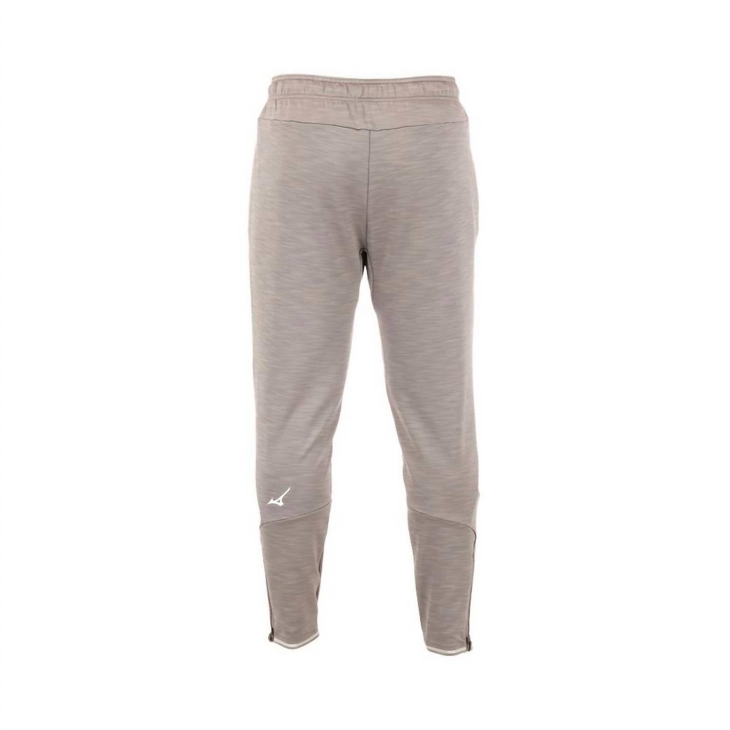 Introducing the Men's Infinity Jogger Pant by MIZUNO in a sleek "Shade" color, perfect for active lifestyles. Designed with the innovative MIZUNO DRYLITE® moisture management system, these joggers use dual filament yarn construction to keep you dry and comfortable. Made from eco-friendly recycled materials with a 4-way stretch for a tailored fit, the joggers feature reflective details for added safety and articulated knees for enhanced movement. Equipped with side seam zipper pockets and Mizuno branded elastic, they boast a tapered leg style and effortless, closure-free design ideal for any workout.