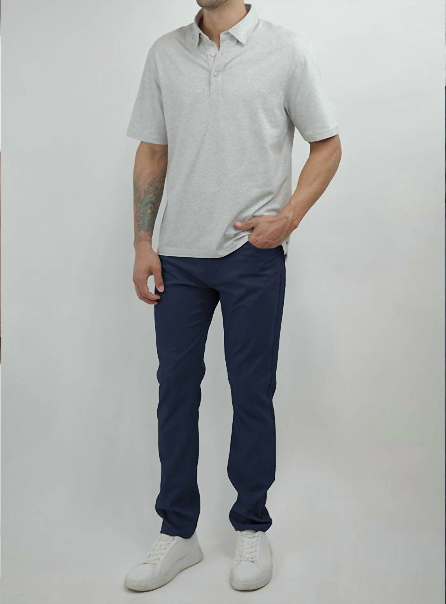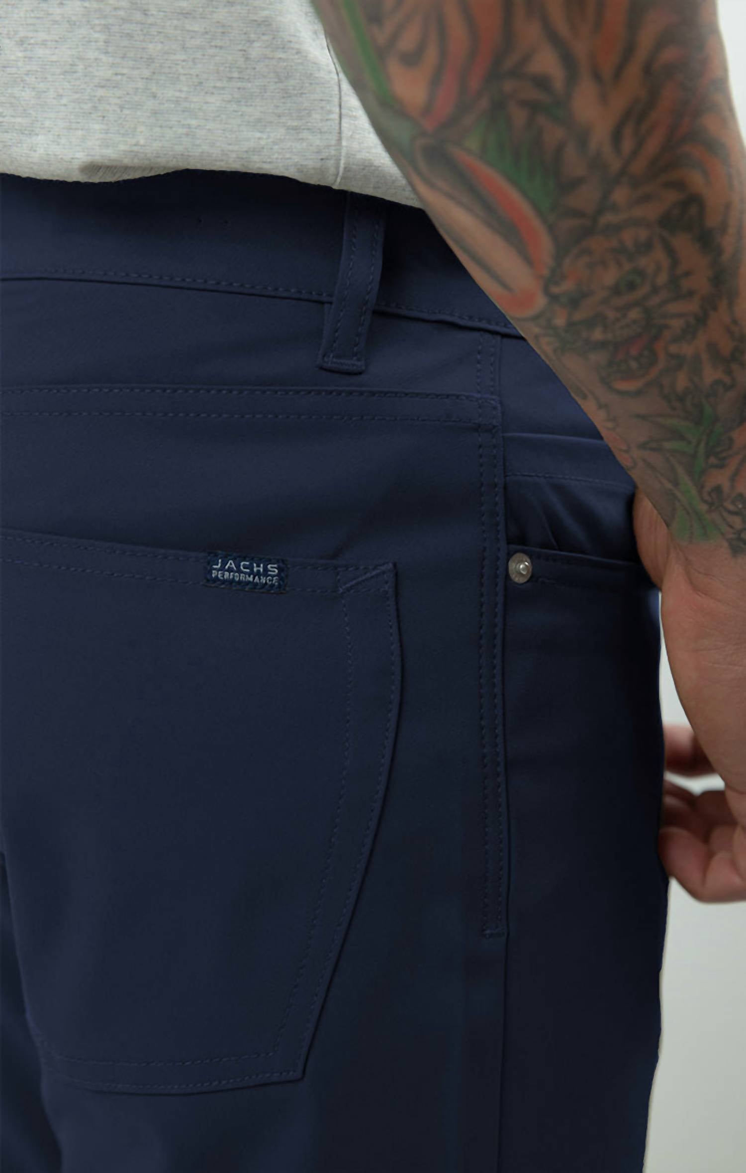 Meet the Poly Spandex Performance Tech Pants by JACHS NEW YORK, expertly crafted for the modern man in sophisticated hue. These feature a 5-pocket design and relaxed fit, complemented by a flexible waistband with silicone grip for added convenience. Made from 96% polyester and 4% spandex, the material ensures ultimate comfort with 4-way ultra stretch and moisture-wicking properties to keep you cool and dry. Imported and designed with a classic straight leg and button closure, these pants are your go-to for minimalist style this summer.