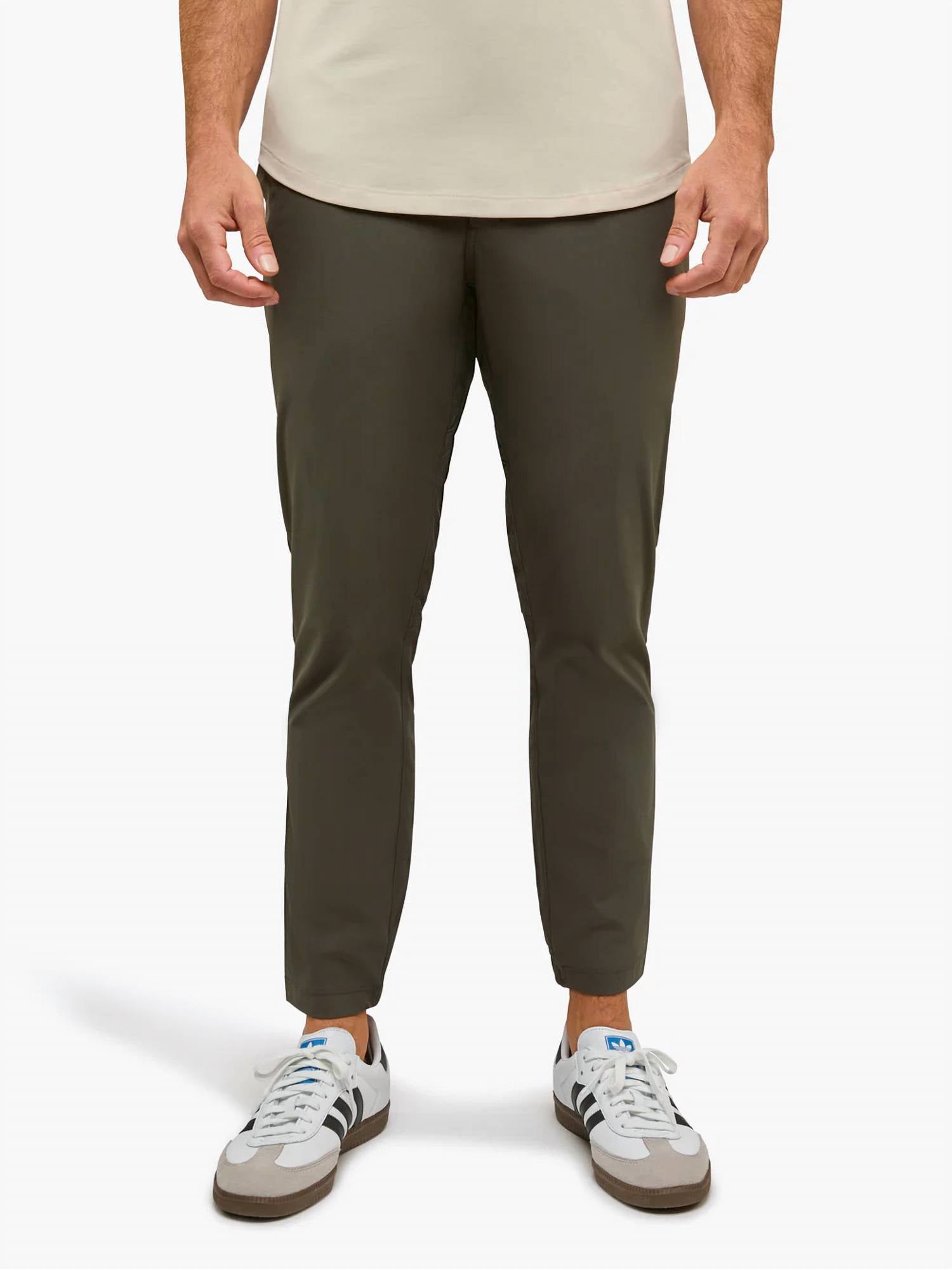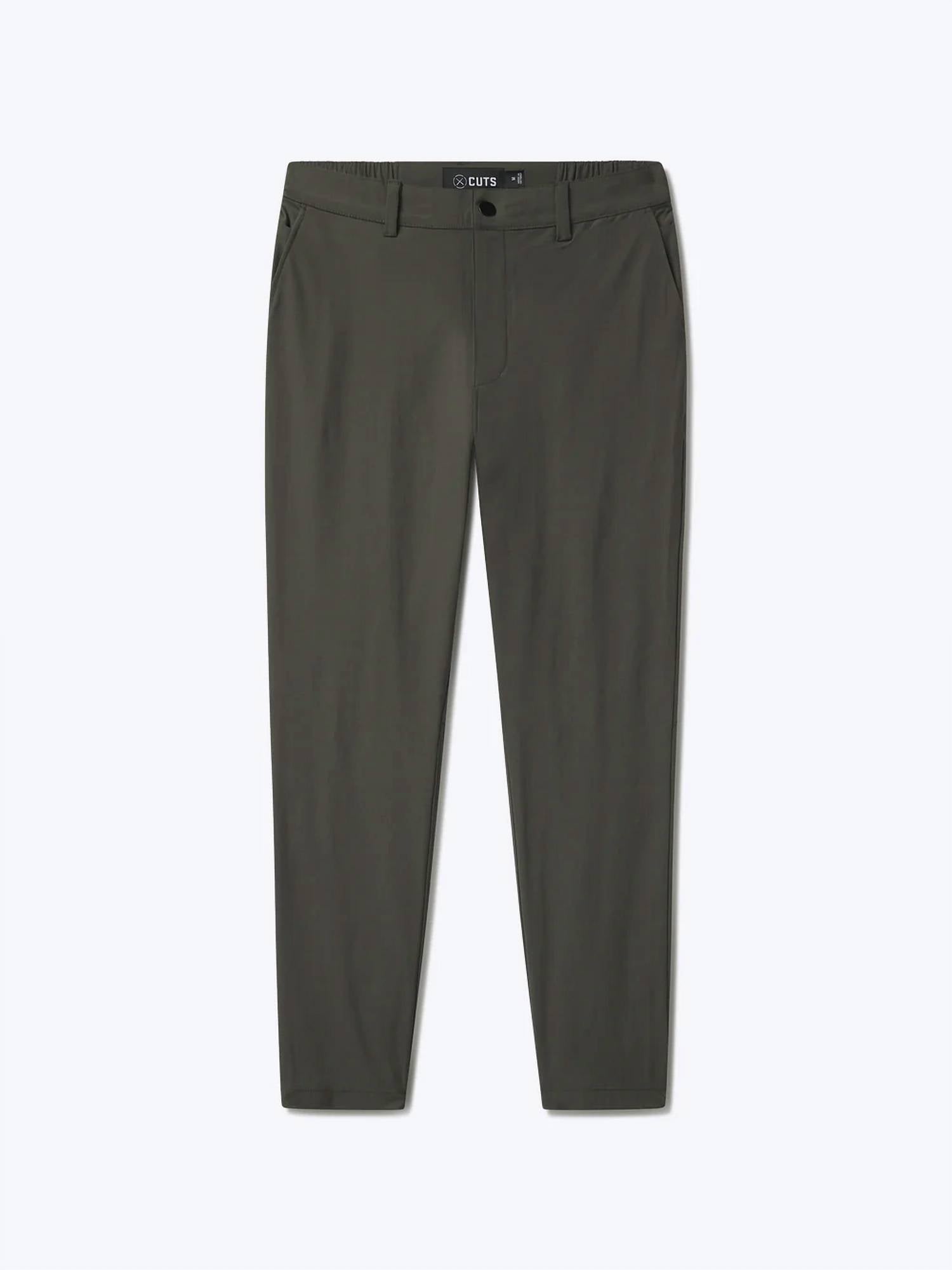 Introducing the AO Jogger by CUTS in a refreshing Pine hue, designed for the modern man seeking both style and comfort. Constructed with our proprietary Versaknit™ fabric, it offers a composition of 53% Elastomultiester and 47% Polyester. These slim-fit joggers feature a modern cuff, elastic waistband, and a practical snap closure with a zippered fly for a flexible and secure fit. With thoughtful details like a secure hidden zippered pocket, two rear welt pockets, and a gusset for added mobility, these joggers are ideal for travel and minimalist wardrobes. Care instructions are machine wash cold and tumble dry on low heat, with an inseam of 27.5 inches for size S.