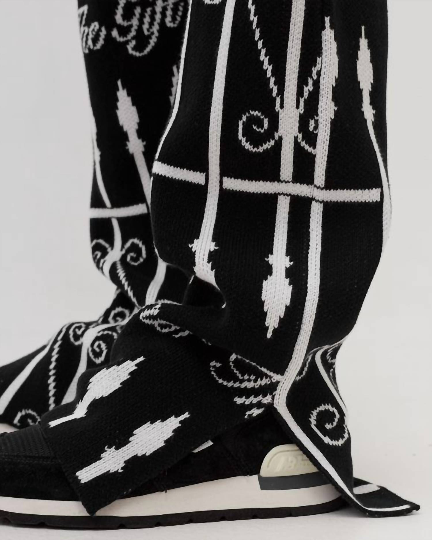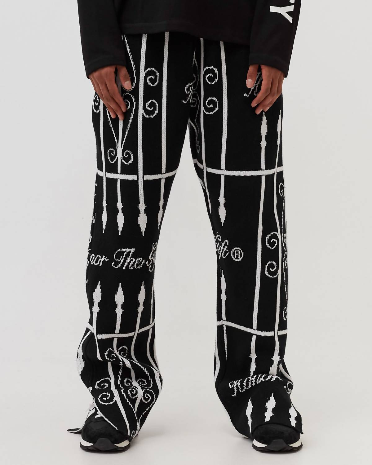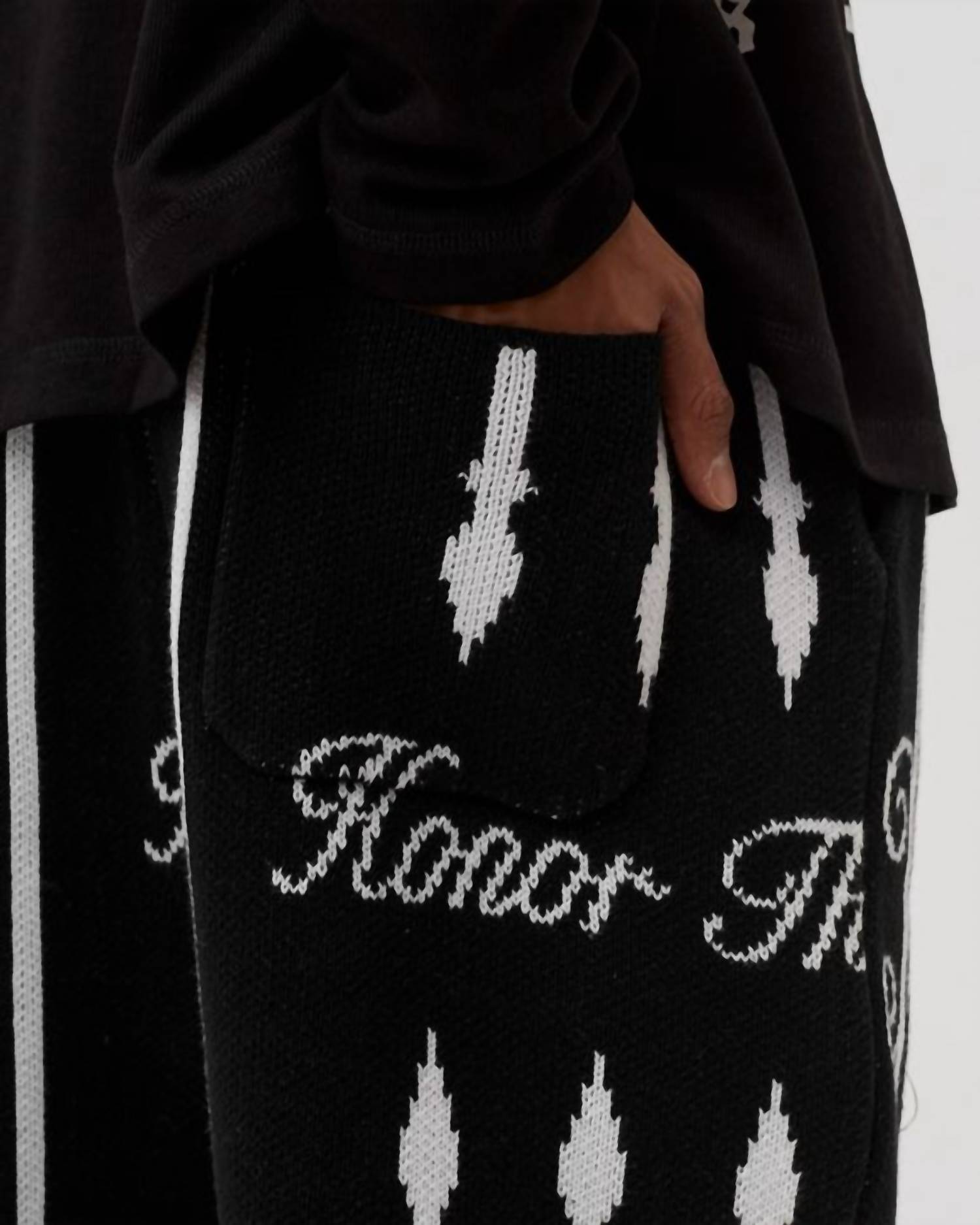 Knitted. HTG print allover. Pull on. Adjustable waistband with tie. 100% Cotton.