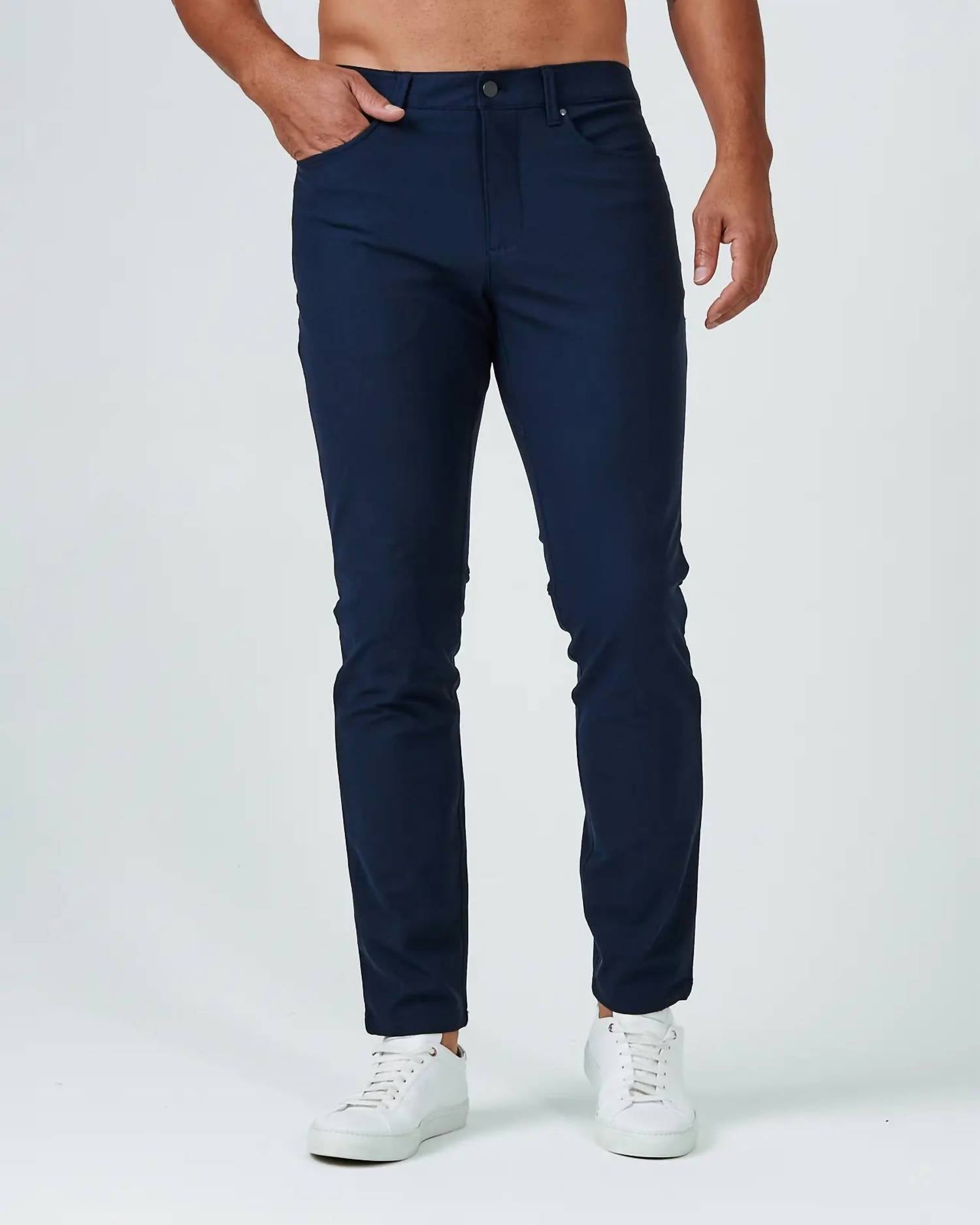 Introducing the Infinity™ 7-Pocket Pant by 7Diamonds, a versatile navy cargo pant crafted in 100% Polyester designed for the modern man. The Linear Flex® fabric technology ensures durability and a perfect fit through its stretch and shape retention, making it as comfortable as it is stylish. These pants feature a slim fit with a straight leg, mid-rise waist, and practical seven-pocket design, secured with a button closure. Easy to care for, simply machine wash and tumble dry low, avoiding bleach and ironing for best results. Ideal for spring and perfect for a holiday party.