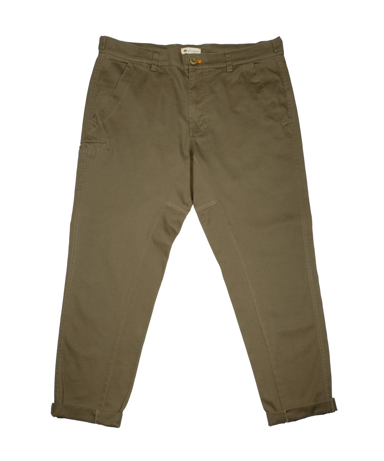 Upgrade your wardrobe with the Dapper Pant by Allview, offering a perfect combination of classic style and modern fit. These military-colored chinos feature a mid-rise, comfort fit with a tapered leg and spacious thigh area for optimal movement. Crafted from a sustainable cotton blend with 2% spandex, they offer a garment-dyed finish for a contemporary washed look. The pants include practical patch pockets, hidden welted back pockets, and a convenient pocket sleeve on the right leg. Closure is ensured with a button waist and zip fly, finished with dual adjustable waist buttons. Ideal for spring vacation wear, these chinos personify minimalist sophistication.