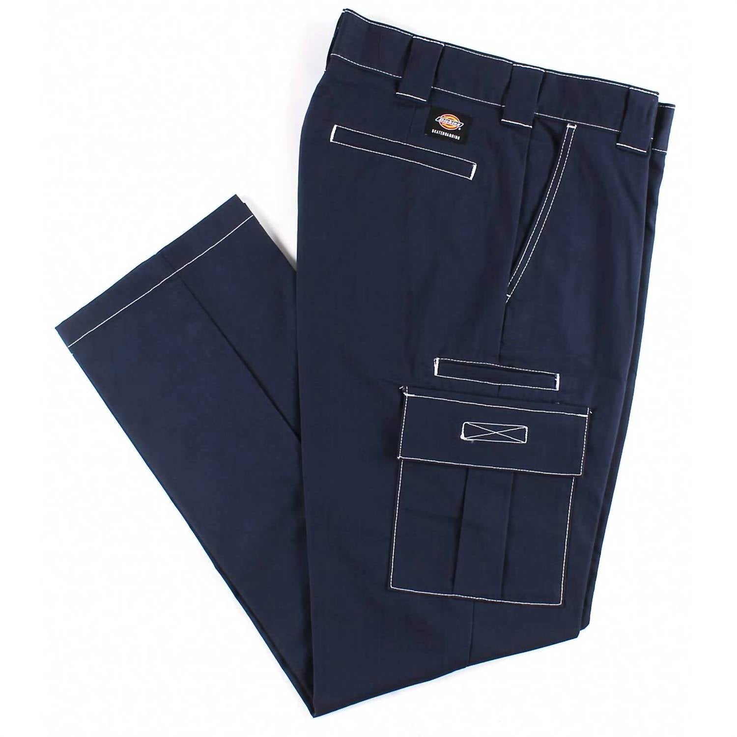 Elevate your streetwear wardrobe with the Dickies Skateboarding Cargo Pant in versatile Navy. Designed for men, these pants feature a mid-rise waist and regular fit with a straight leg style, perfectly combining comfort and function. Made from durable nylon with a solid pattern, they include practical pockets for added utility. Closure: Button closure. Care: Machine wash and tumble dry.