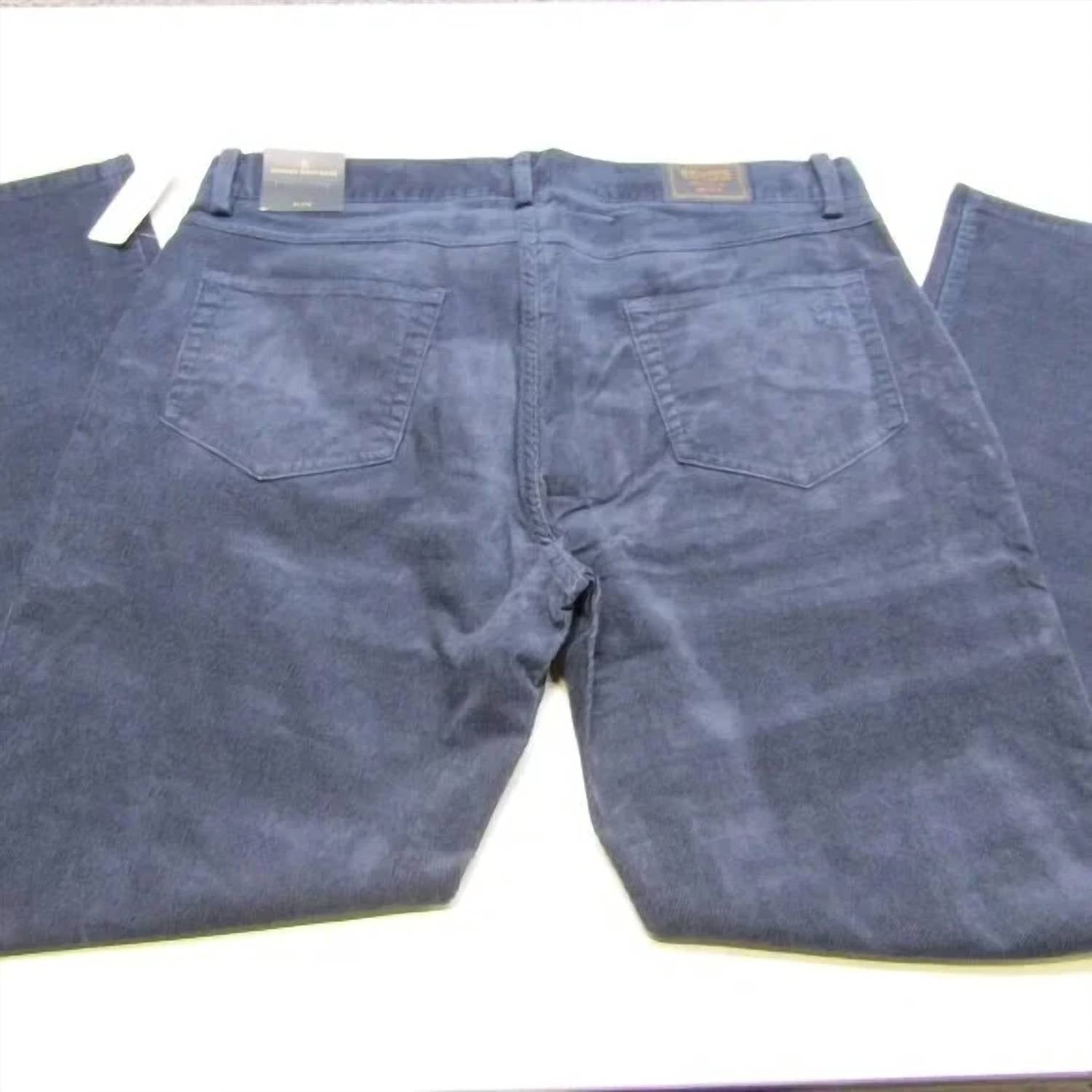 Elevate your wardrobe with the Men’s Slim Corduroy Pants by Brooks Brothers, crafted from 98% cotton and 2% elastane for a comfortable stretch. Designed in a rich navy color, these pants offer a sleek slim fit with classic five-pocket styling and durable corduroy fabric. A zipper fly with button closure and belt loops provide a customizable fit. Care instructions recommend machine washing for easy maintenance.