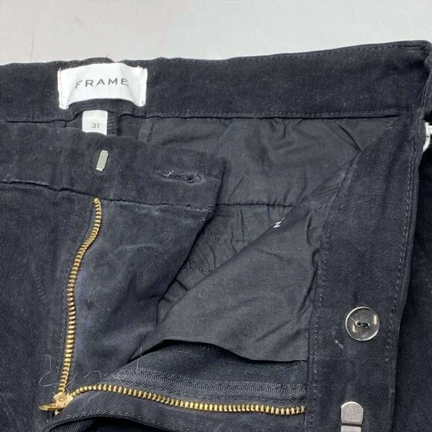 Elevate your wardrobe with the Men's Slim Fit Pants by FRAME, designed for style and comfort in any setting. These black chinos blend a tailored silhouette with a slight tapered leg for a modern, versatile look. Made in Turkey, the composition includes 74% Lyocell, 17% Rayon, 7% Elasterell-P, and 2% Elastane, ensuring stretch and all-day wearability. Closure: Zip closure. Perfect for work, travel, or refined casual occasions, featuring convenient pockets and a solid pattern.