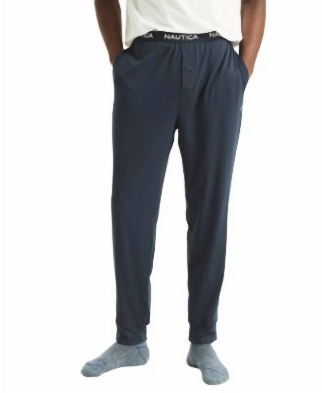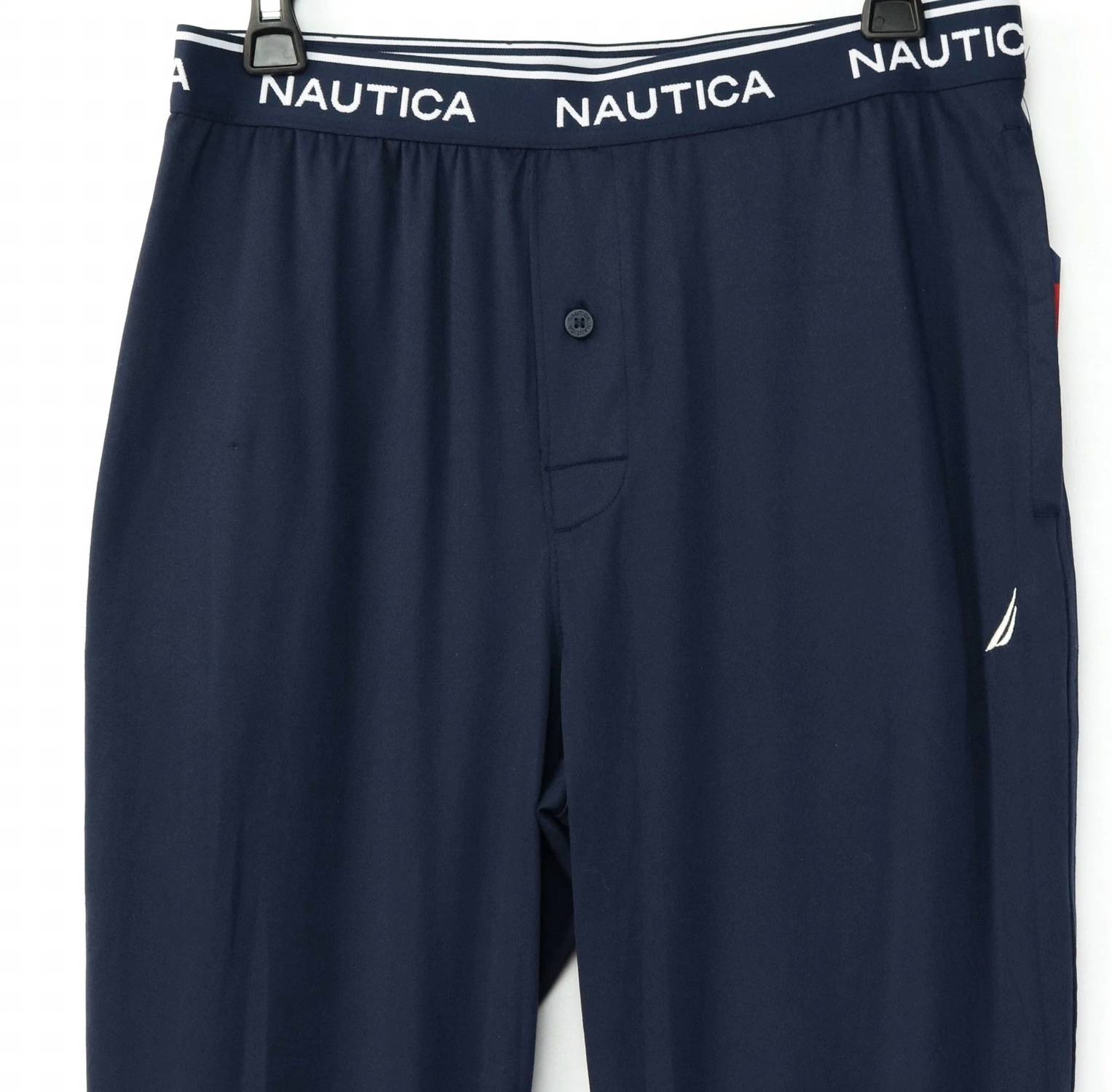 Elevate your loungewear collection with the Nautica Classic-fit Stretch Solid Sleep Joggers in Navy. Designed with a relaxed fit, these joggers are crafted from 95% polyester and 5% elastane, offering active-stretch interlock fabric for easy and flexible movement. The pull-on style features an elastic waist, side pockets, ribbed cuffs, and Nautica's iconic J-class logo at the front, with an approximate inseam of 29 inches. They are machine washable for convenient care, making them a minimalist essential for comfortable fall evenings.