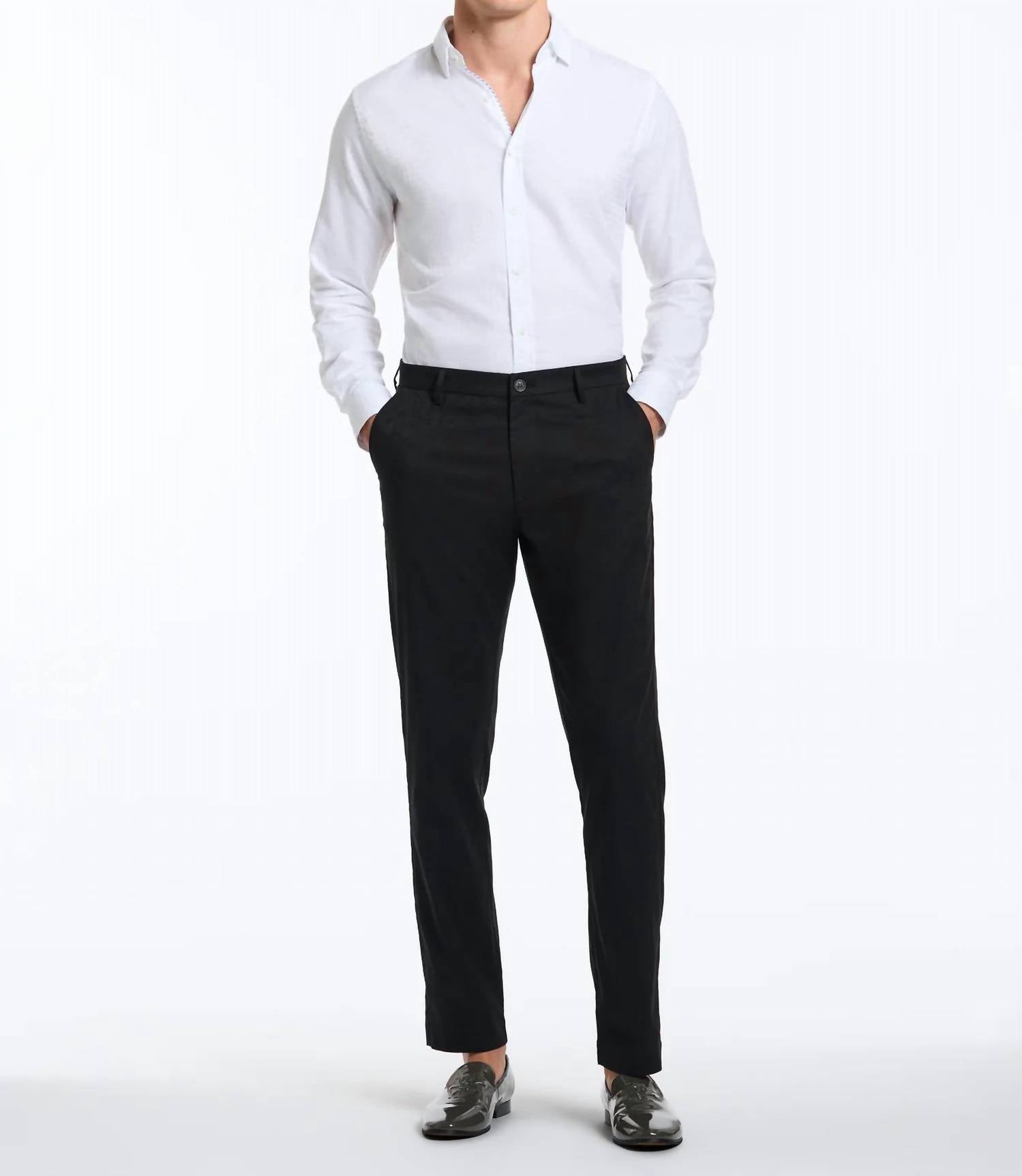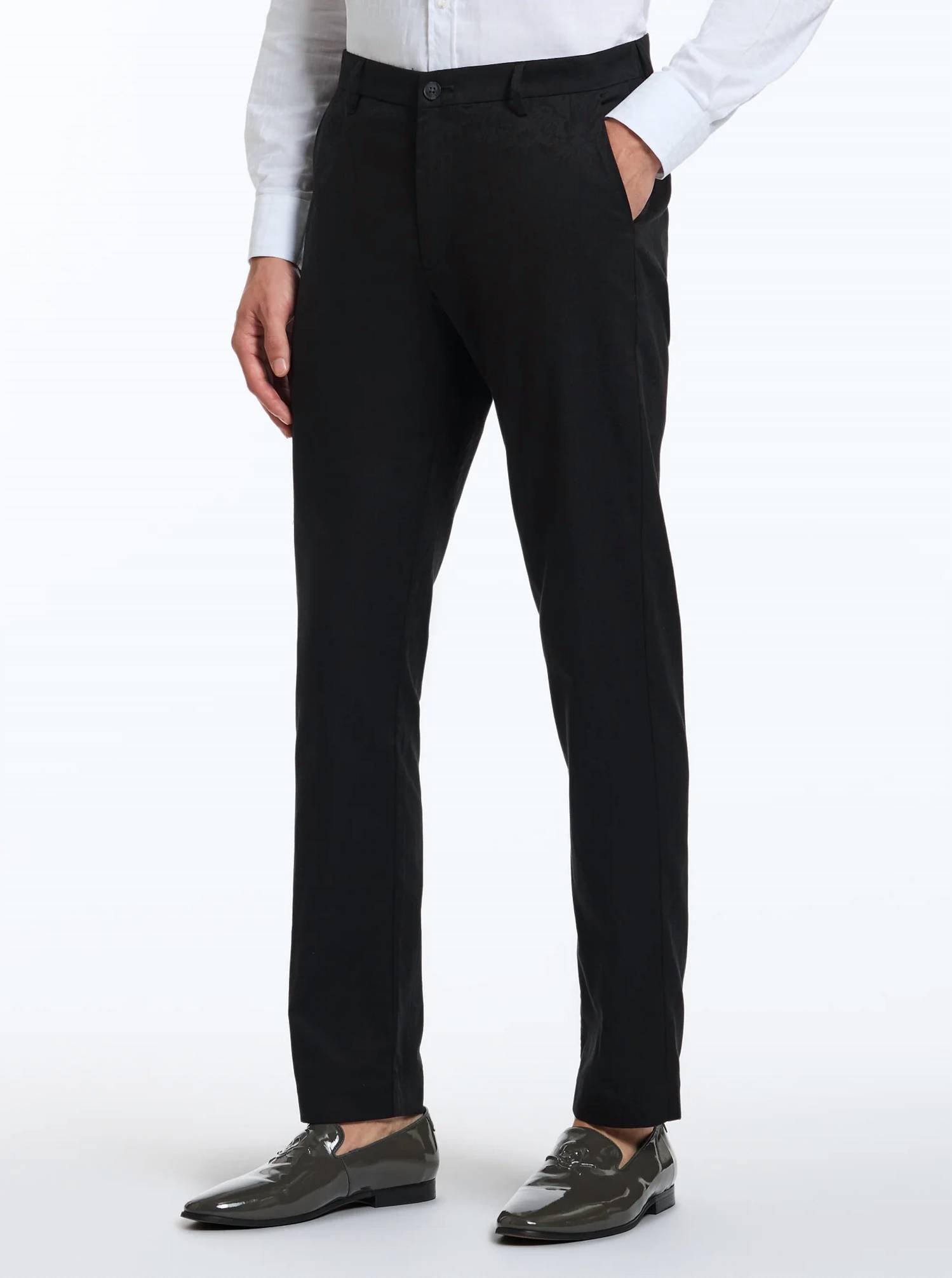 Step into sophistication with the Highland Jacquard Perfect Fit Dress Pants by Robert Graham, crafted in a classic black hue. These men's dress pants boast a straight leg style with a regular fit, enhancing your workwear wardrobe. Made from a stretch cotton blend composed of 97% cotton and 3% spandex, they feature a convenient zip fly and button closure, and practical 1/4 angle pockets. Care is simple with machine wash cold instructions, ensuring effortless maintenance for your wardrobe staples.