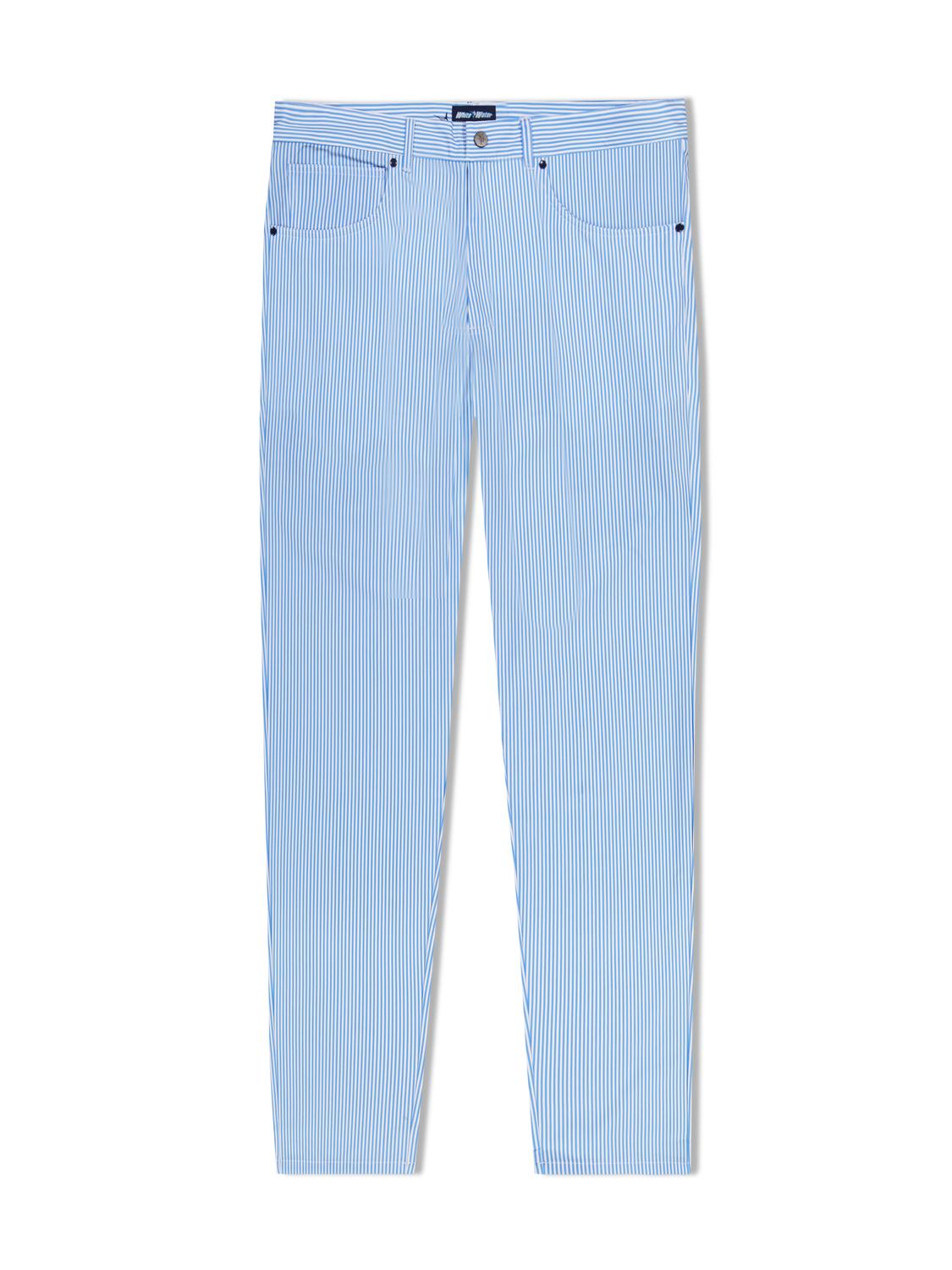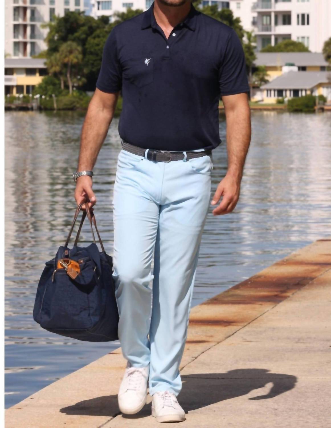 Elevate your summer workwear with the Freeport Lightweight Pants by White Water Life. Crafted in a solid Seersucker Blue, these pants feature a stylish five-pocket design, complemented by practical front and back slash pockets. The regular fit and straight leg cut offer a polished look with the comfort of a soft stretch fabric and non-compression liner. Made for effortless transitions from office to dinner, these pants come with a convenient button closure.