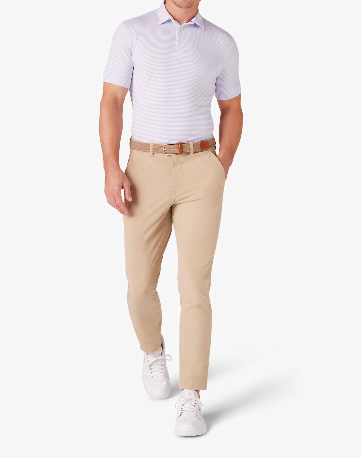 Elevate your golf wardrobe with the Mizzen + Main Versa Polo in a refreshing Lilac Stripe, designed for both style and comfort. This short sleeve polo features a classic collar and convenient button closure, making it perfect for a day on the golf course or any casual outing. Country of Origin: Not specified. It's a lightweight, moisture-wicking staple that offers unparalleled ease of wear.