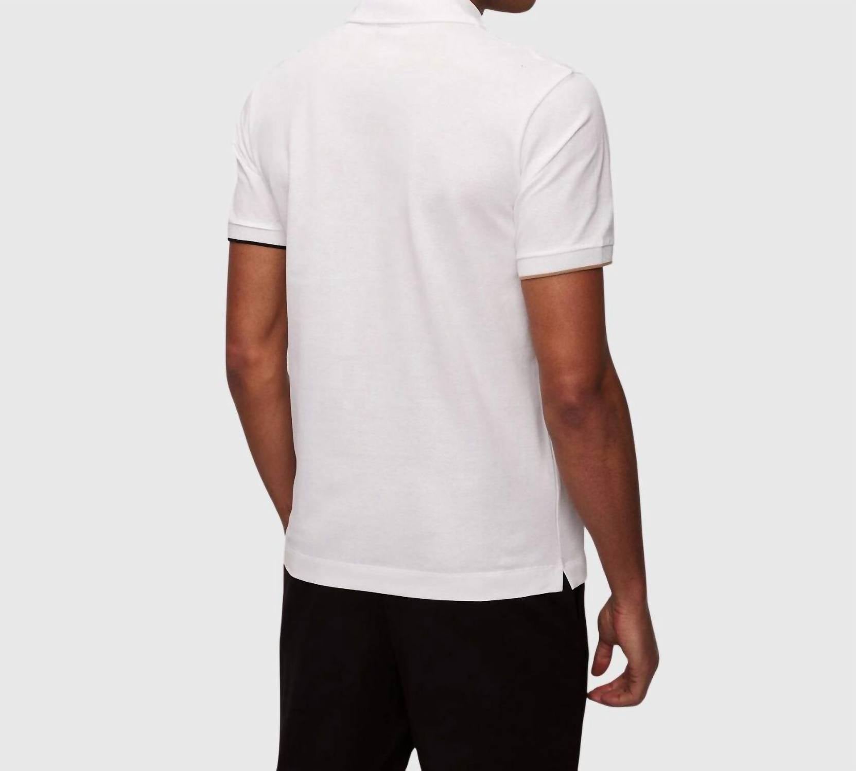 Experience the refined style of the Hugo Boss Men's Cotton Short Sleeves Polo Shirt in crisp white, crafted for a regular fit. Made from 100% cotton, it features short sleeves with a distinctive logo trim and a collared neck for a classic look. Country of Origin: Imported. Care for this staple piece is simple with machine wash instructions.