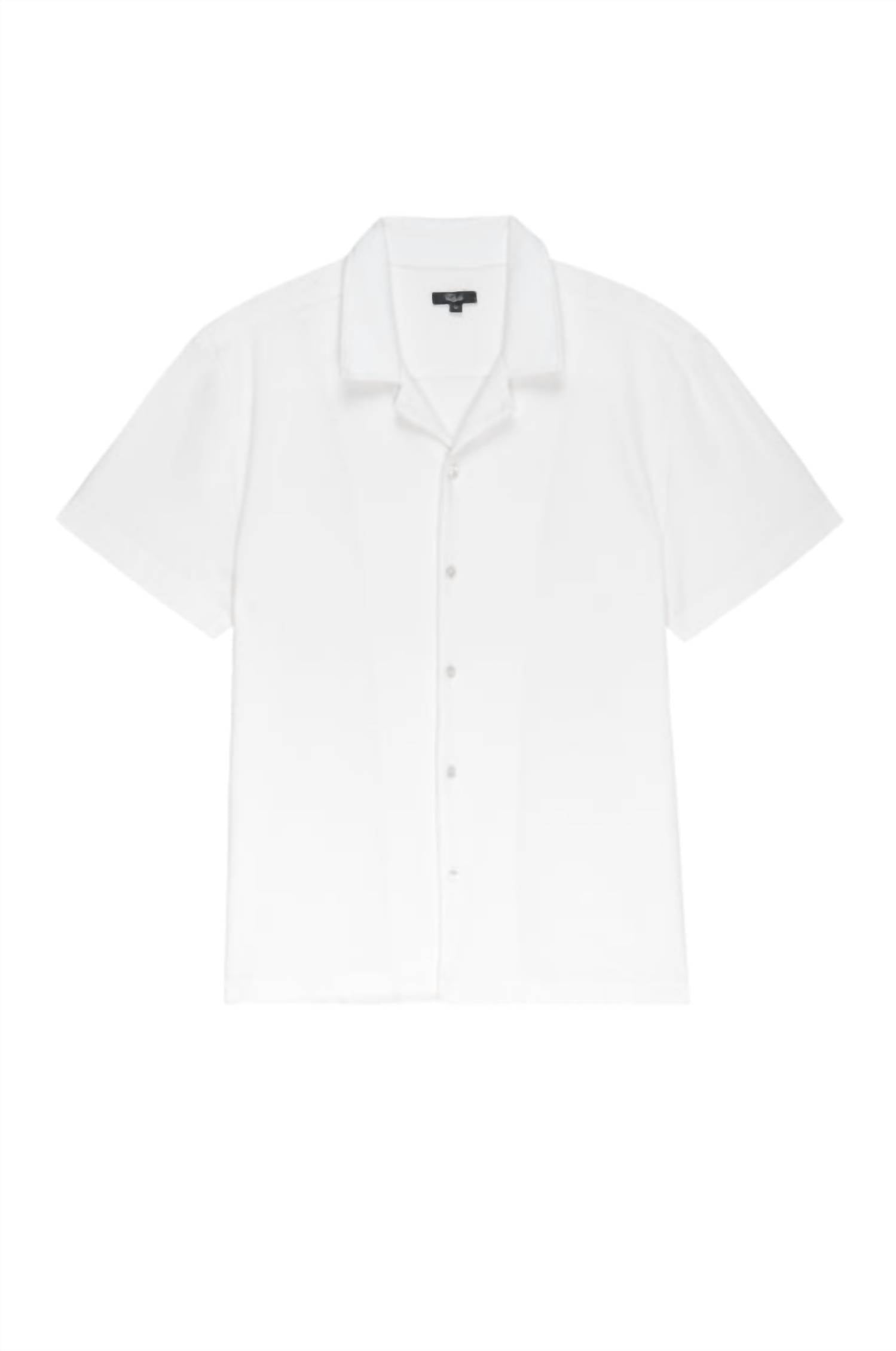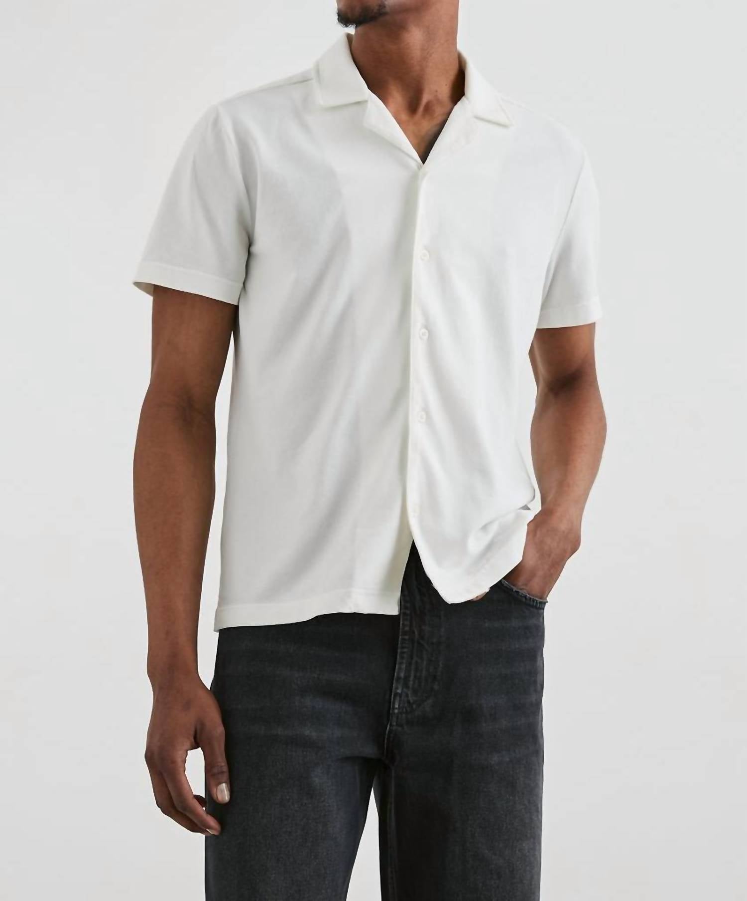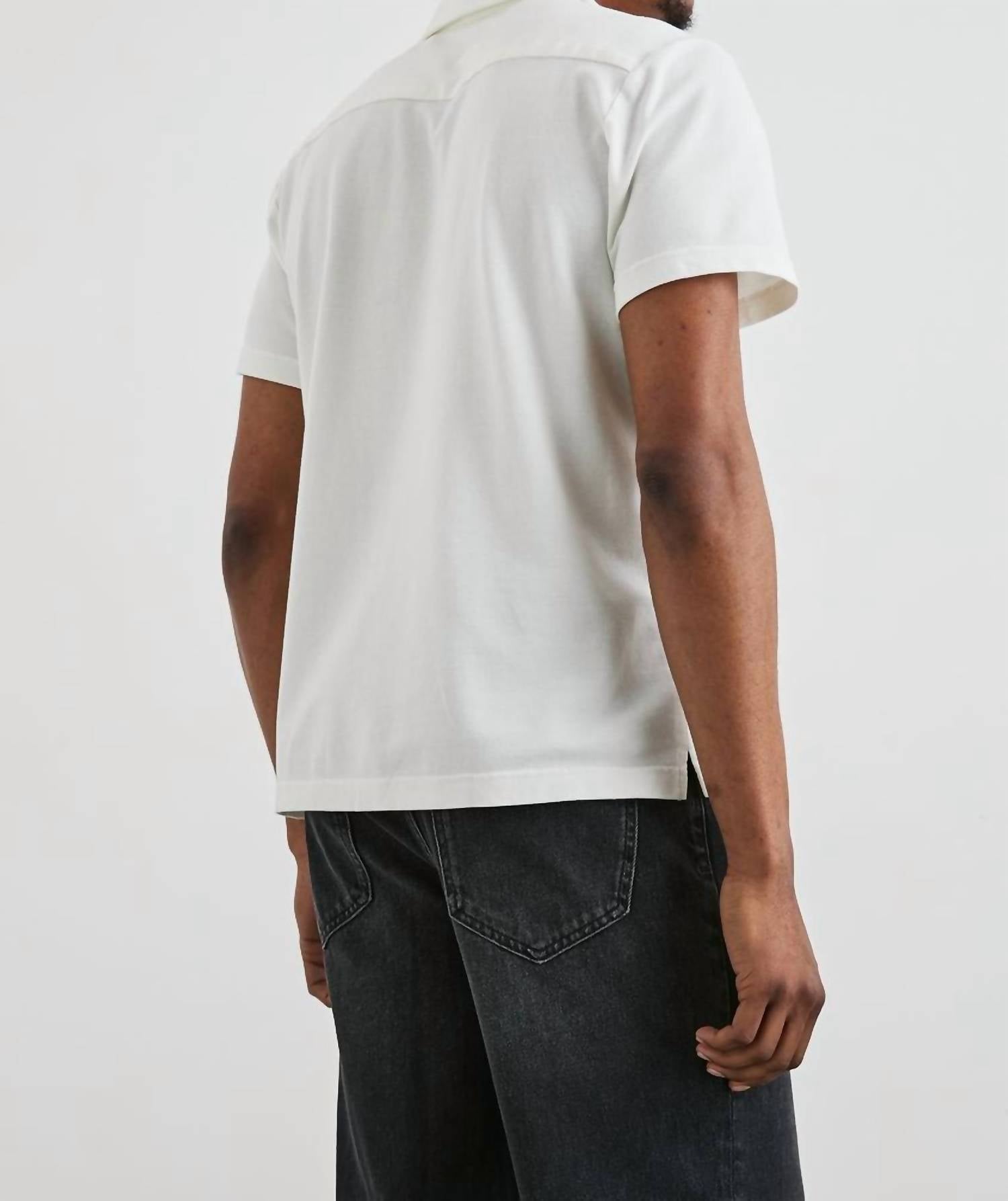 Introducing the Alain Pique Short Sleeve Shirt by Rails, a modern classic perfect for any occasion. Made from 97% Cotton and 3% Spandex, this dove-colored polo offers a luxurious, soft hand-feel and a streamlined silhouette without a chest pocket. Closure: Button closure. Care instructions: Machine wash cold on a gentle cycle with like colors, no-chlorine bleach, tumble dry low, and cool iron when needed. Front body length measures 28" from size M. Crafted with minimalist sophistication, it's a standout piece for springtime gatherings and festive occasions.