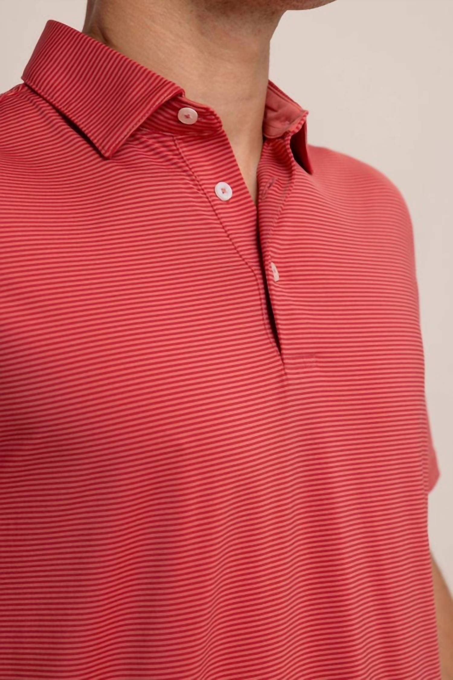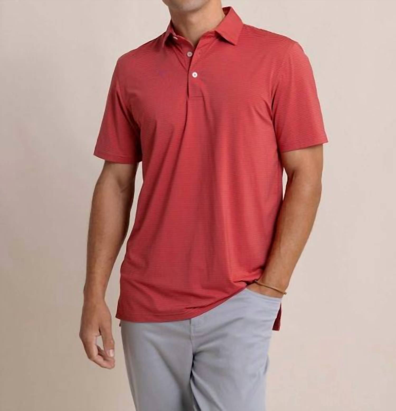 This performance polo is a versatile wardrobe that blends classic style with modern comfort. This striped polo shirt features subtle, small stripes and allows you to express your style. Designed for all occasions, from casual outings to more formal affairs, this polo shirt is the perfect choice. Brrr°® cooling technology ensures you remain cool and comfortable, making it a top pick for the changing seasons. Machine Wash