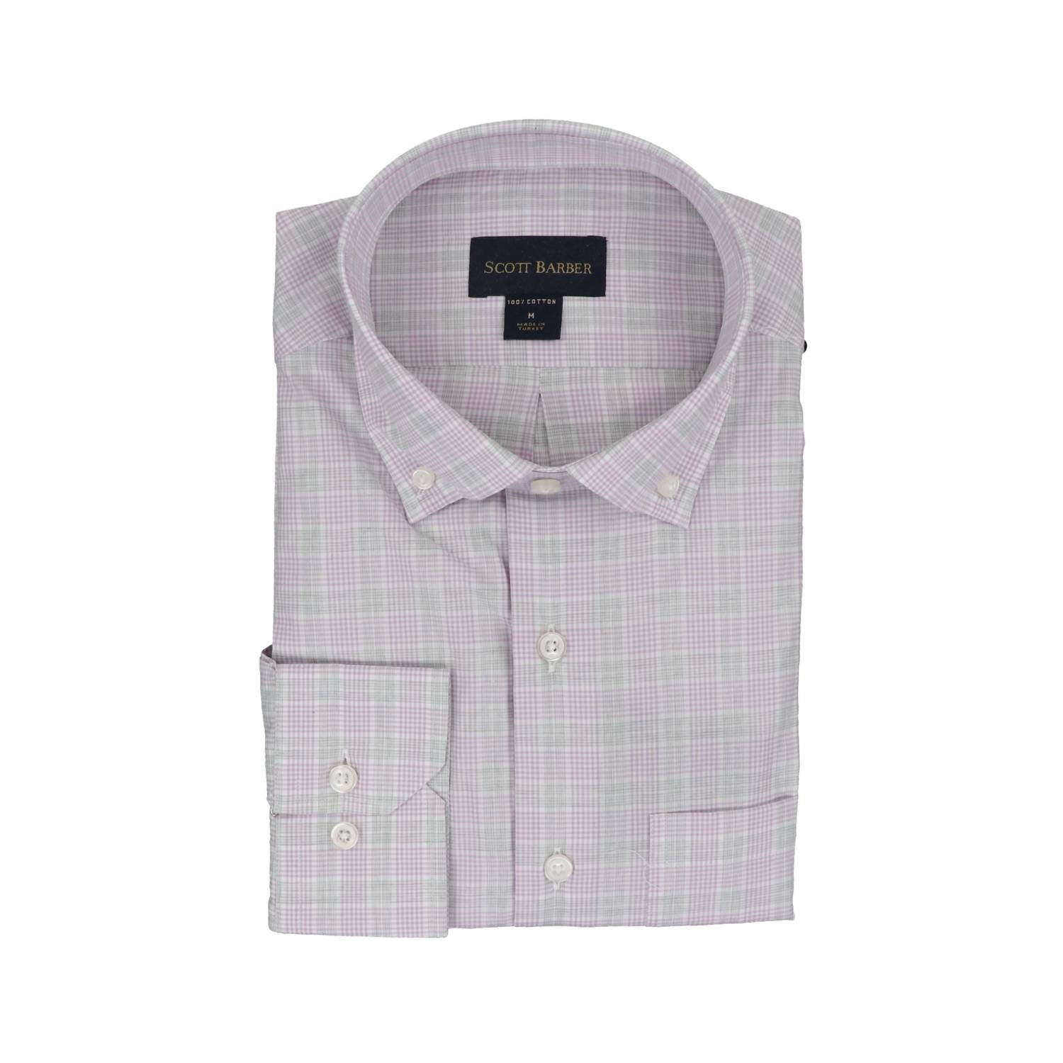 Introducing the Men's Organic Cotton Plaid Polo by Scott Barber, a timeless piece in a distinctive lilac plaid pattern. Crafted from 100% organic cotton, this classic fit shirt features long sleeves and a signature button-down collar adorned with mother of pearl buttons. Designed with care in Turkey, it offers a refined look that's perfect for any occasion. The button closure provides a polished finish while incorporating a practical pocket for added convenience.