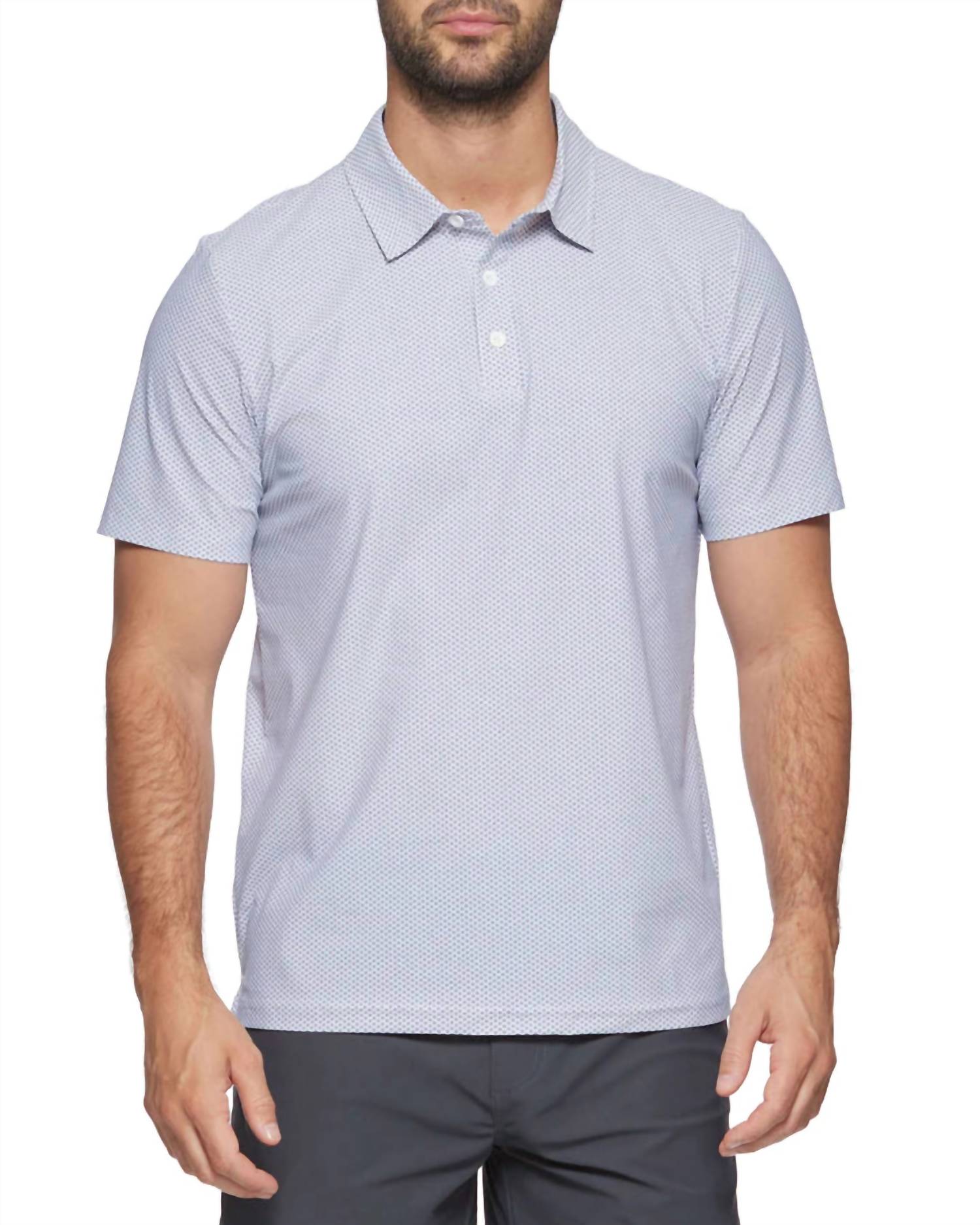 Introducing the Bloomington Short Sleeve Dot Print Performance Polo by Flags & Anthem, perfect for keeping cool and comfortable from the golf course to casual outings. With a tailored athletic fit and composed of a breathable 76% Nylon, 24% Spandex blend, this polo features a classic spread collar and a traditional three-button front. The performance fabric offers built-in stretch, moisture-wicking, and UPF protection. Closure: Button closure. Care: Machine wash. Available in a stylish White Combo with a flattering 29.5” length that can be worn tucked or untucked.