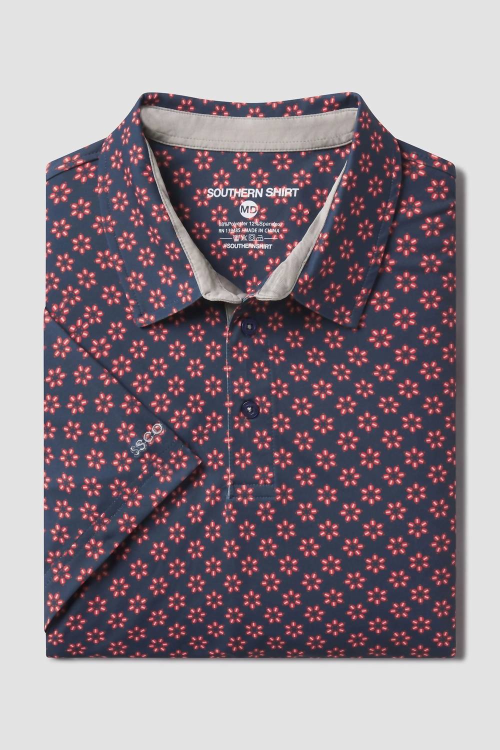 Elevate your style with the Men's Down Set Hut Printed Short Sleeve Polo from Southern Shirt Company, perfect for any engagement. Crafted from 92% Polyester and 8% Spandex jersey knit, this polo is lightweight and breathable with a no-show collar to prevent rolling. It features quick-drying, moisture-wicking, and 4-way stretch properties, ensuring ultimate comfort and flexibility. Closure: Button closure. Care: Turn garment inside out, machine wash cold on a gentle cycle, tumble dry low, and avoid ironing or using bleach and softeners.