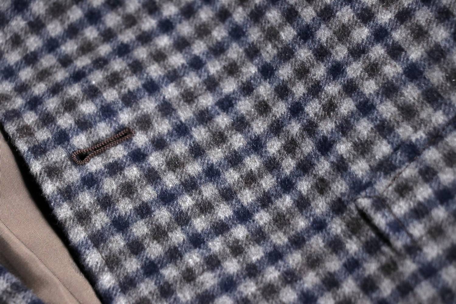 Introducing the Men's Loro Piana Storm System Cashmere Field Coat by Ravazzolo, designed to blend timeless style with functionality in a sophisticated grey plaid and check pattern. This long sleeve coat is made from luxury cashmere and hand-tailored in Italy, embodying the renowned quality of Ravazzolo. Thanks to Loro Piana's Storm System, it is both water and wind-resistant, offering optimal comfort in the elements. With a button closure and pockets for practicality, this coat is a sublime addition to your fall and winter wardrobe.