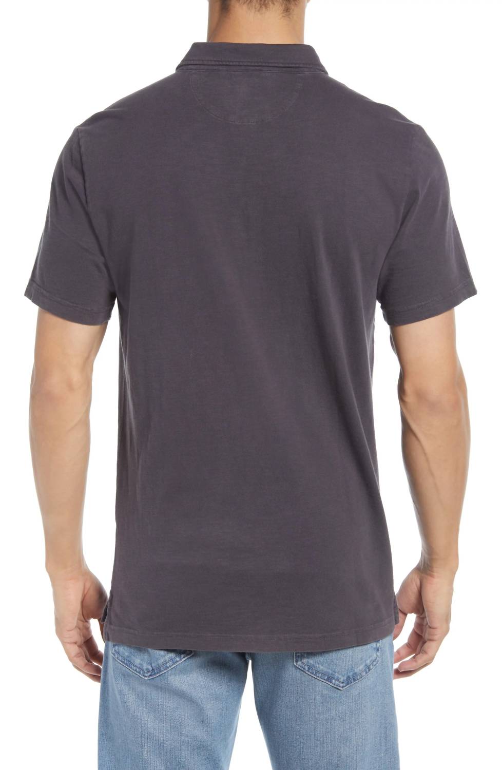 Discover the Faherty Sunwashed Short Sleeve Polo, a staple for effortless day-to-night transitions. Crafted from 100% organic cotton, this Storm Blue polo features a collar neckline and a relaxed, straight fit with short sleeves. A casual yet refined look is ensured by its pull-on style, complete with faux shell buttons and a printed "Sunwashed" label at the back neck. For best care: turn inside out and machine wash cold on a gentle cycle, tumble dry low, and cool iron when needed. Model Quetzal is 6'1" and wears a size Medium.