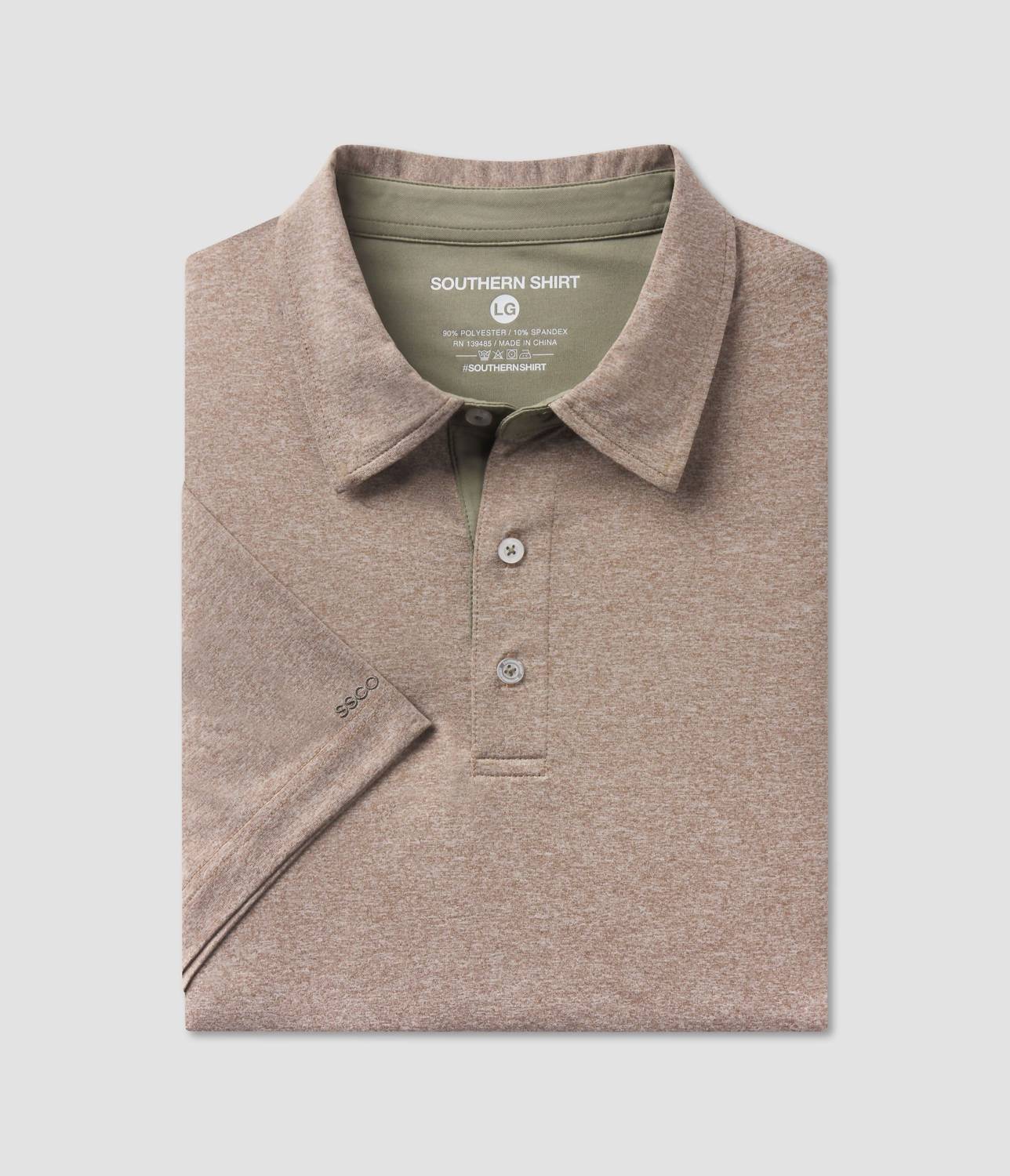 Embrace timeless style with the Grayton Heathered Polo by Southern Shirt Company, crafted in a textured Starburst fabric that's perfect for summer. This short sleeve polo is composed of 92% polyester and 8% spandex, ensuring a lightweight, breathable fit with 4-way stretch. It features a no-roll ribbed collar, custom yarn-dye stripe, wrinkle-resistant and moisture-wicking properties. Closure is a 3-button placket, and for care, turn the garment inside out and machine wash cold on a gentle cycle, tumble dry low.