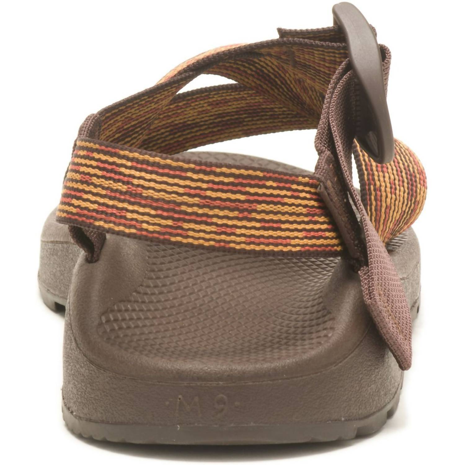Step into comfort with the Men's Mega Z/Cloud Sandal by Chaco, crafted in a rich Pep Burnt Orange for the ultimate summer accessory. These sandals feature a 32mm polyester jacquard webbing upper that wraps around the foot and through the midsole for a customized fit, complete with adjustable and durable high-tensile webbing heel risers. The LUVSEATâ„¢ dual-density PU midsole and Chaco Cloud cushioning ensure all-day comfort, while the non-marking ChacoGripâ„¢ rubber compound outsole with a 3.0mm lug depth provides impressive traction. Perfect for travel and streetwear trends, these open-toe sandals boast a flat heel style, making them ideal for any summer adventure.