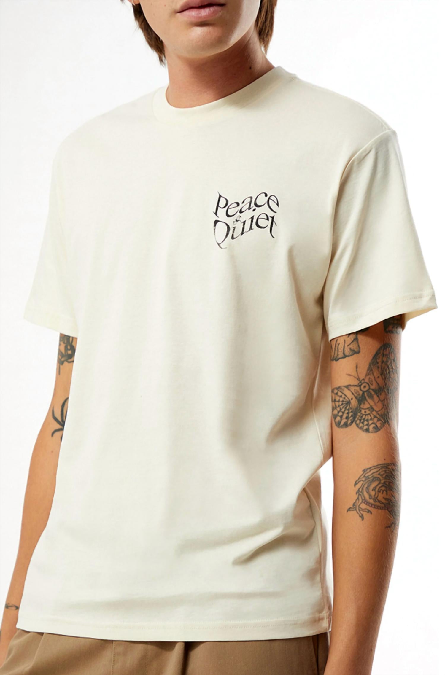 Discover the Warped T-shirt by Museum of Peace & Quiet, designed in a timeless bone shade perfect for any casual outing. This men's tee offers short sleeves and a classic crewneck for ultimate comfort. Crafted from 100% cotton, it promises quality and breathability and features a pull-on closure for convenience. Made with care instructions to machine wash and tumble dry, and imported for assured craftsmanship.