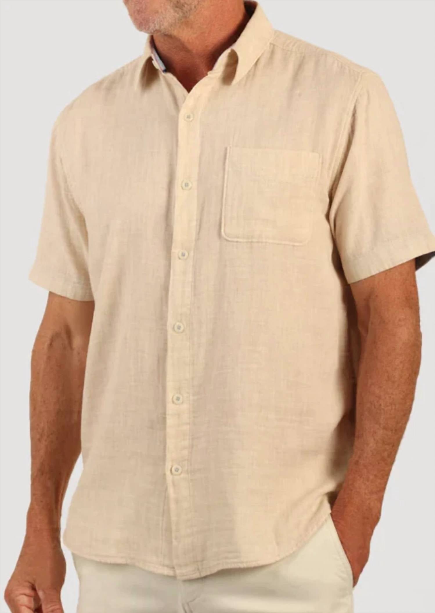 Introducing the Linen Mini Checks Short Sleeve Shirt by TRUE GRIT, perfect for the minimalist man's spring wardrobe. This vibrant orange tee features short sleeves and a classic collar. Closure: Button closure. Care: Hand wash and lay flat to dry.
