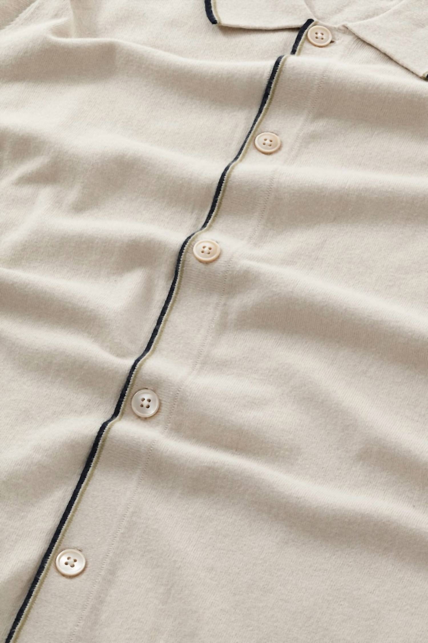 Elevate your wardrobe with the Nolan Button Up Polo Shirt by NN07, a minimalist piece in sophisticated ecru. This men's short sleeve polo is crafted from 100% organic cotton for exceptional comfort and features a timeless collar design. Originating from China, it incorporates Mother-of-Pearl buttons for a refined finish. For care, simply machine wash and line dry. Auden, standing at 6'1", wears a size M, showcasing the shirt's regular fit.