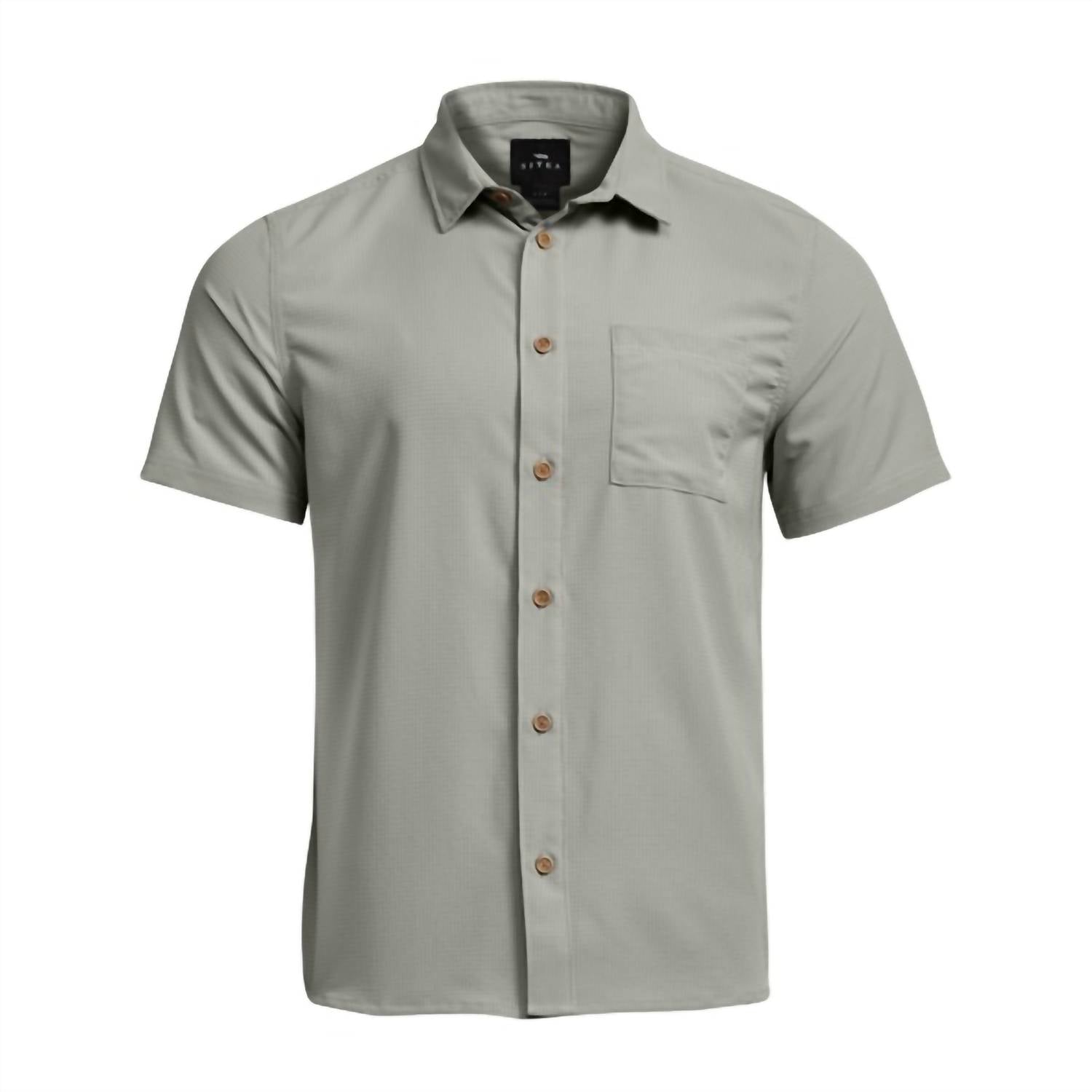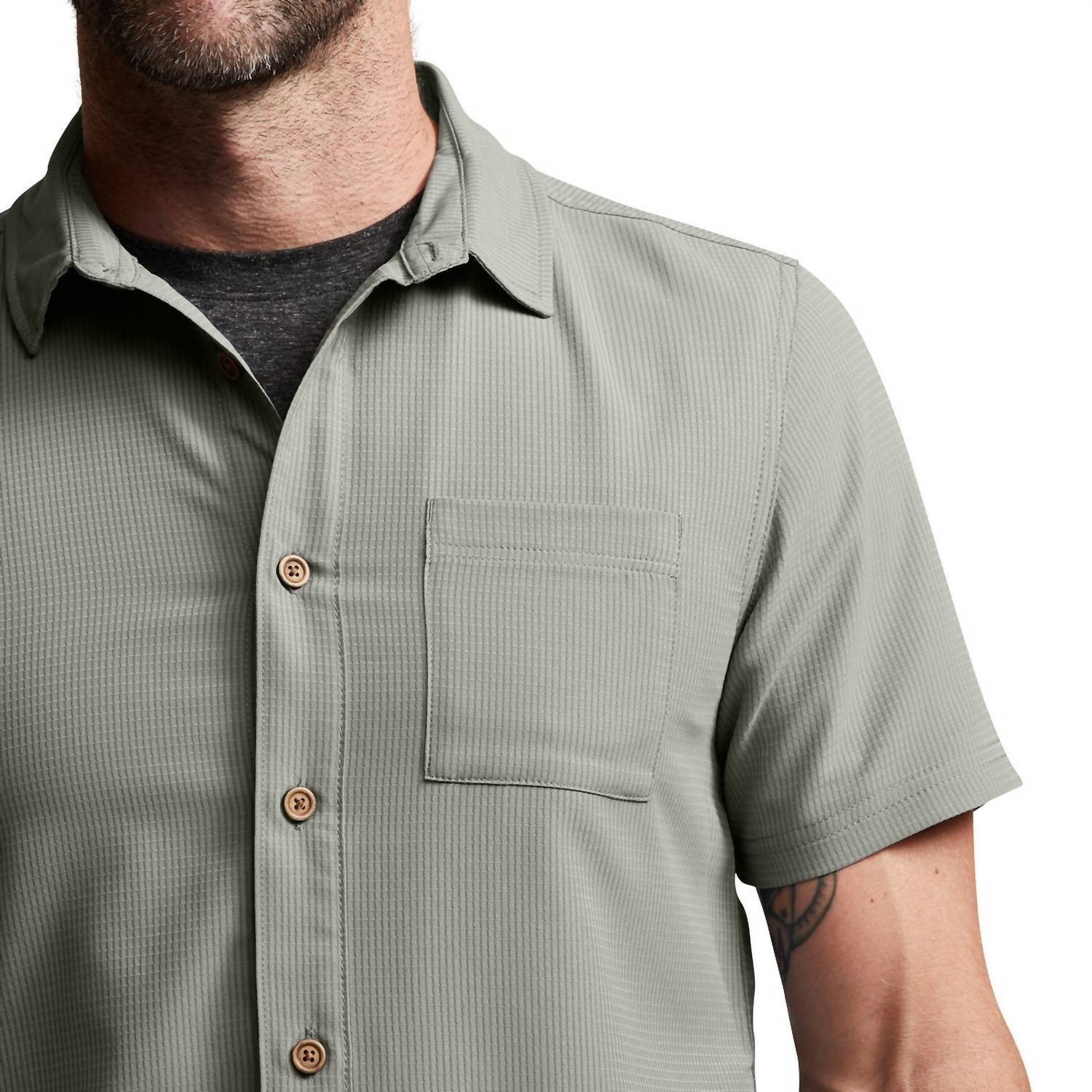 Polygiene odor control technology neutralizes sweat odor. Chest pocket for essentials. Natural wood buttons. 100% polyester with ventilating, wicking grid pattern. Regular fit for comfortable movement.