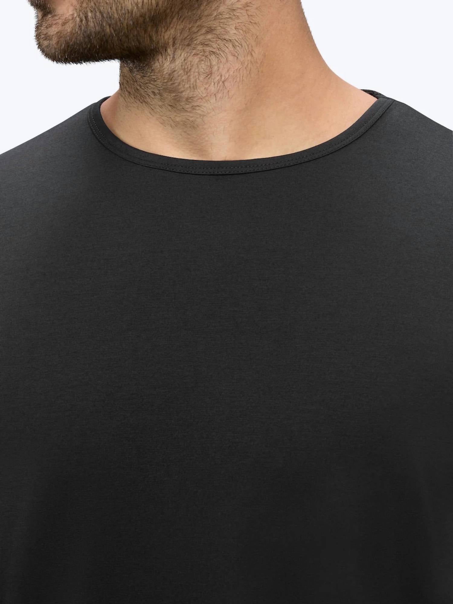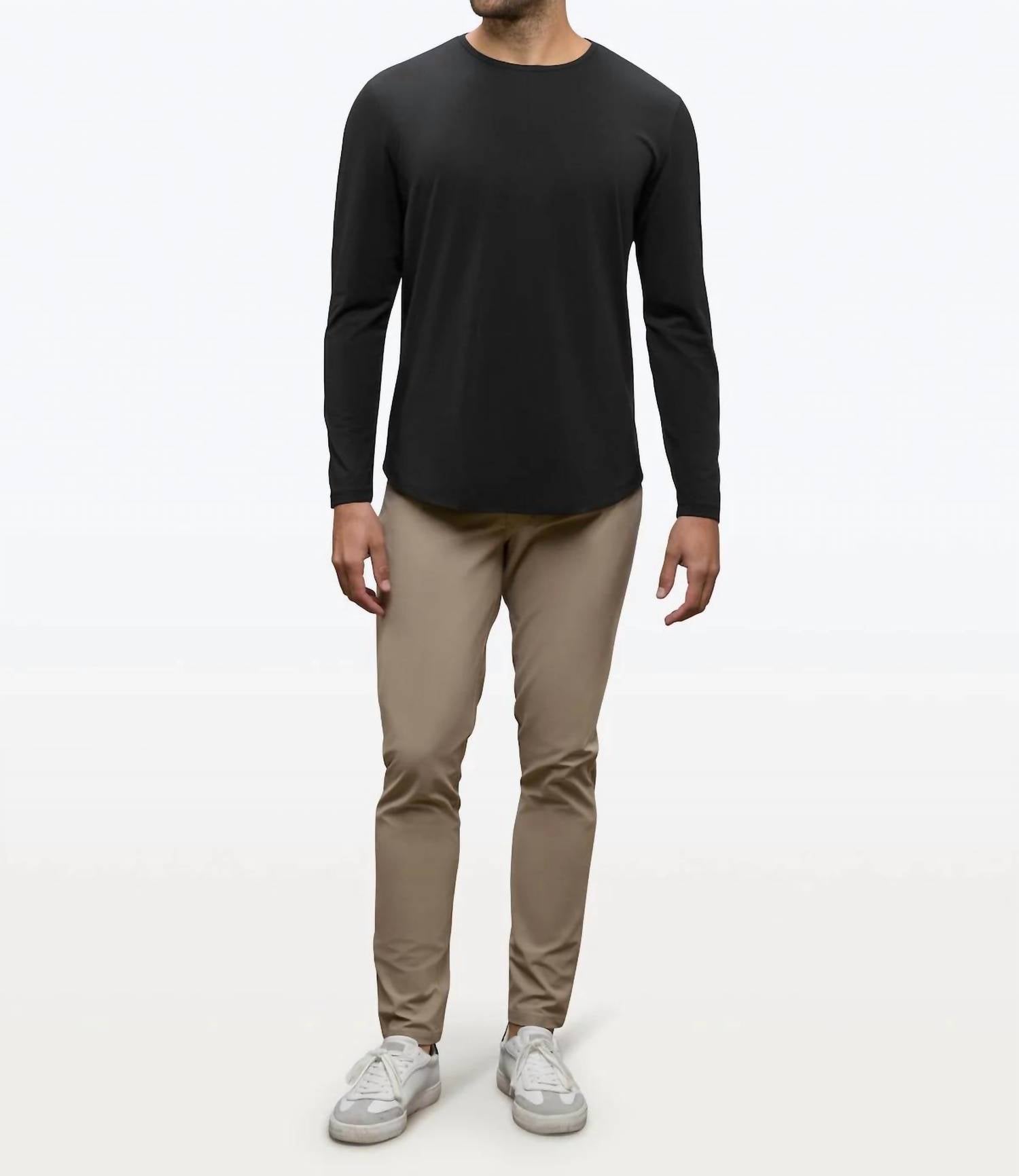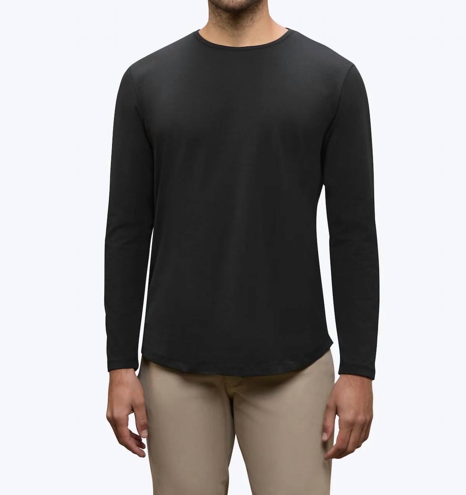 Elevate your wardrobe with the Ao Long Sleeve Curve-Hem Tee by CUTS, a minimalistic solid black staple perfect for any dinner party. This long sleeve t-shirt showcases the brand's custom PYCA Pro® fabric for ultimate comfort and a signature fit that's tapered for a sleek look. Made from a cotton blend of 62% Polyester, 33% Cotton, and 5% Spandex, this tee is designed with a distinctive Curve-Hem to prevent bunching at the waist. Closure: Pull-on style. Care: Machine wash and tumble dry.