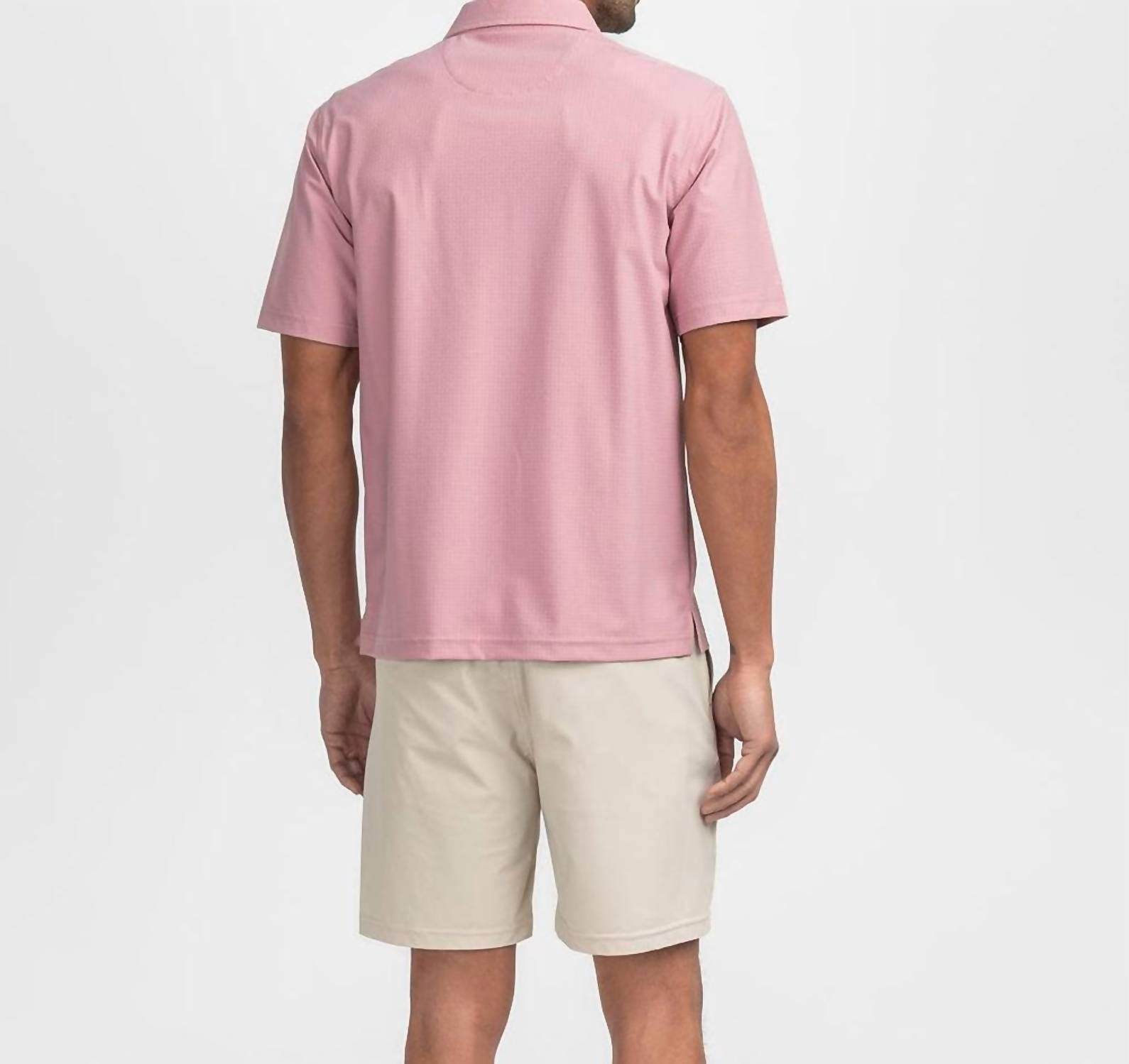 Introducing the Performance Polo by Southern Shirt Company, a minimalist piece perfect for your summer vacation wardrobe. This men's polo in the refreshing lilas color features short sleeves and a classic collar design. Crafted from a breathable nylon blend, it ensures comfort and style without the bulk of pockets. Closure: Button closure. Care instructions: Machine wash and tumble dry.
