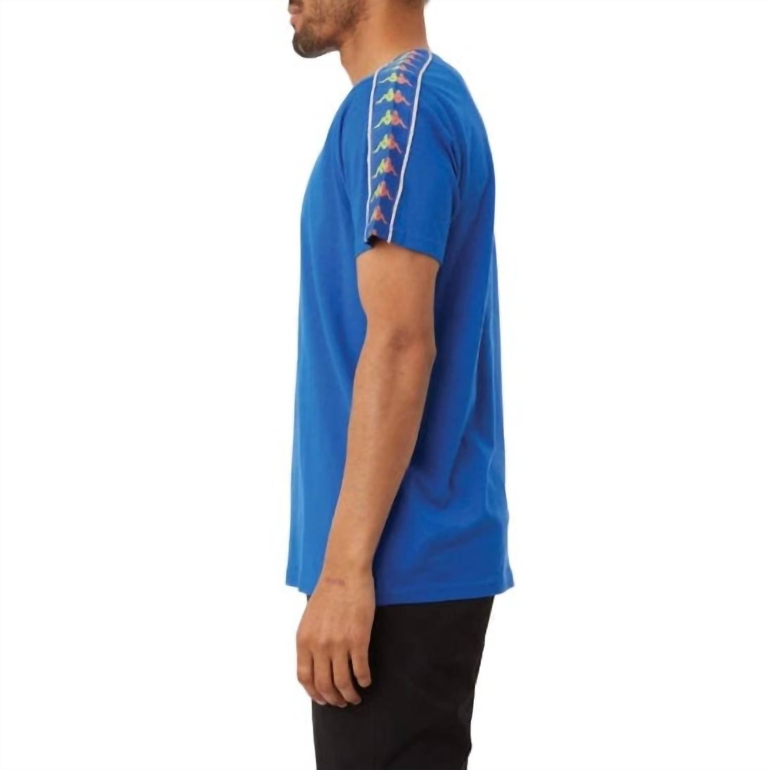 Mens round neck t-shirt in jersey. REGULAR FIT. Kappa lettering printed on chest. Blue/Lime-Orange/Grey