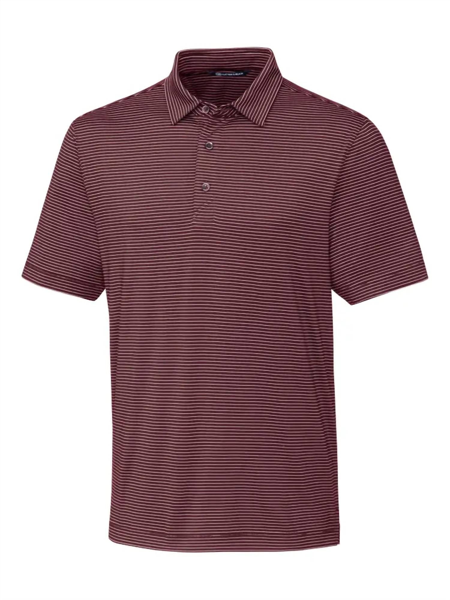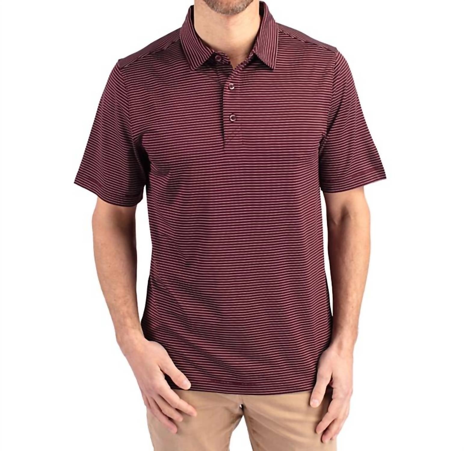 The Cutter & Buck Forge Pencil Stretch Polo Shirt in Bordeaux is the epitome of versatility and comfort for men. This short sleeve polo, crafted from a blend of 92% polyester and 8% spandex, is perfect for any occasion, from the golf course to the office. Designed with a heather jersey and subtle stripe pattern, it features UPF 50+ UV sun protection and moisture-wicking properties. The polo is imported and finished with a self-fabric collar and a CB pennant embroidery at the back sweat patch, offering style and practicality. Machine washable for easy care.