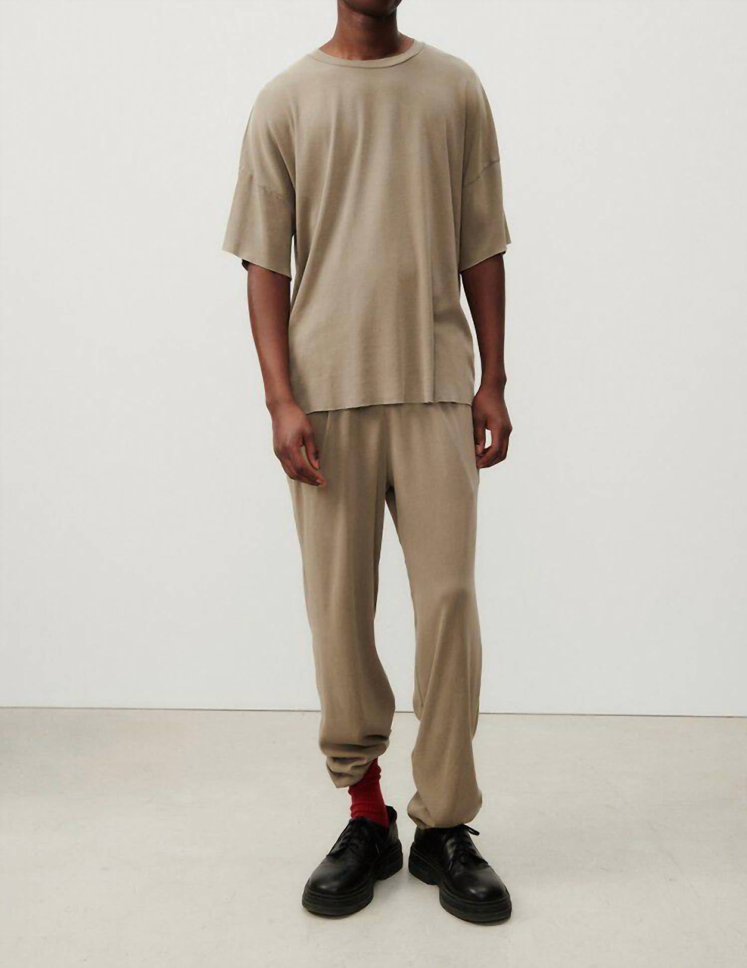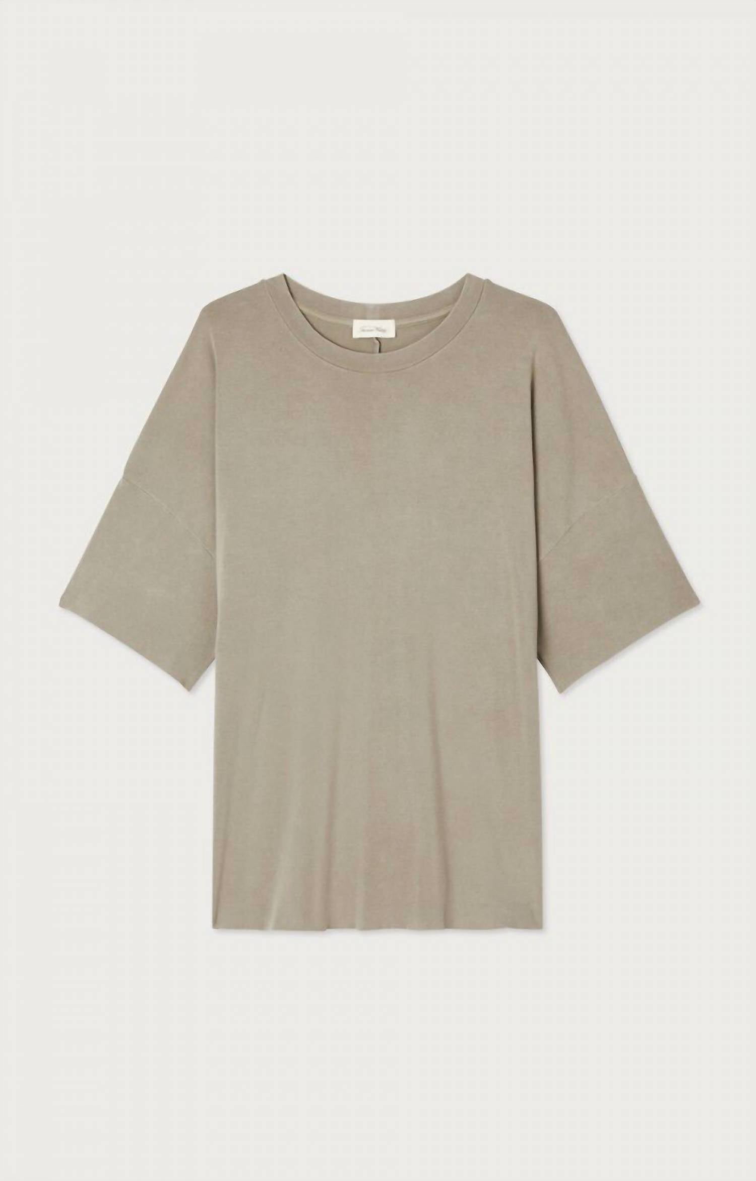 Experience the effortless charm of the Biken Crew Neck Tee by American Vintage, a staple piece in khaki vintage. With short sleeves and dropped shoulders, this men's t-shirt provides a relaxed and loose fit, complemented by a crewneck design. Made in Portugal, it consists of 97% organic cotton and 3% elastane, offering both comfort and stretch. Closure: Pull on. Care: Machine wash and line dry. Perfect for adding a modern touch to any spring outfit, fit for streetwear trends and special occasions alike.