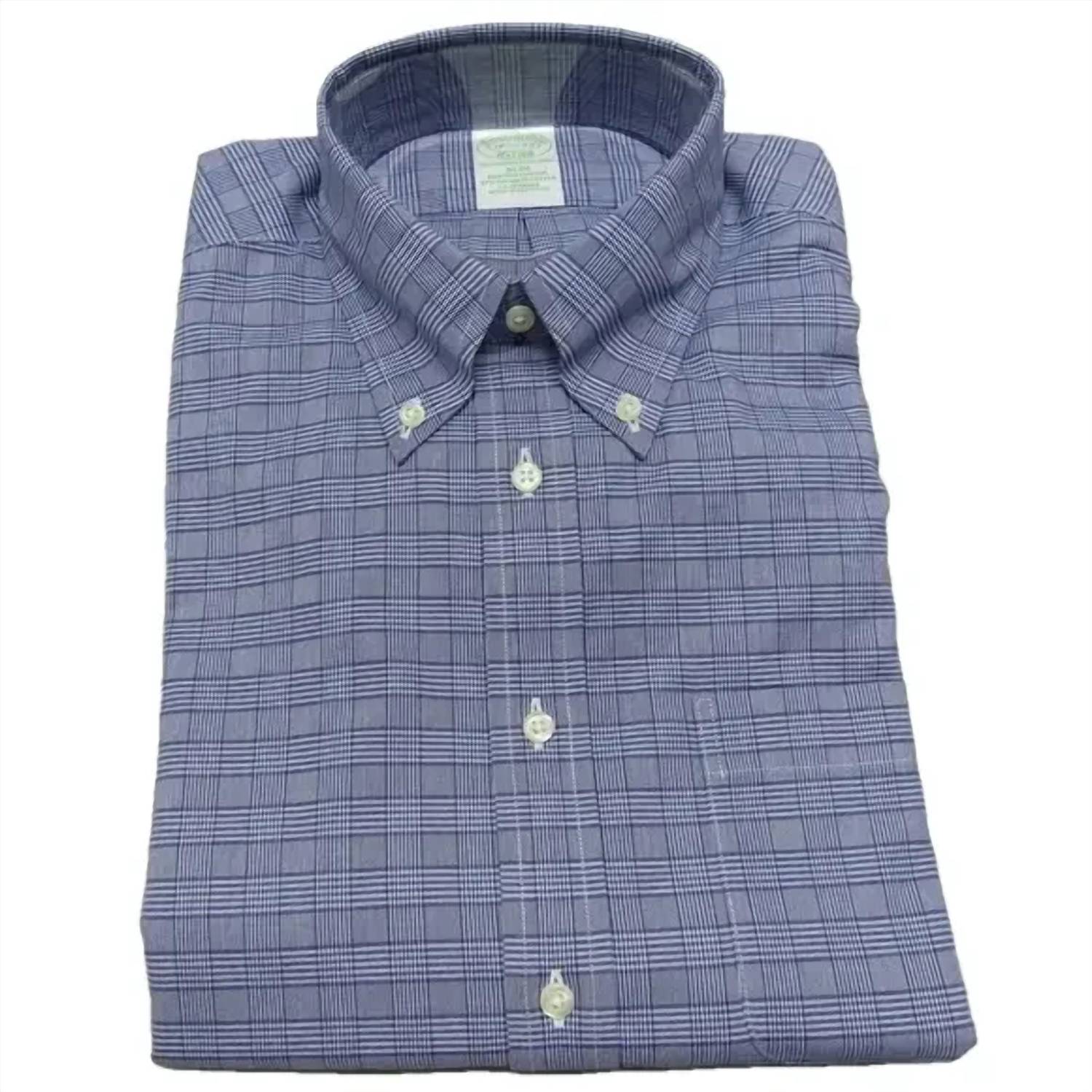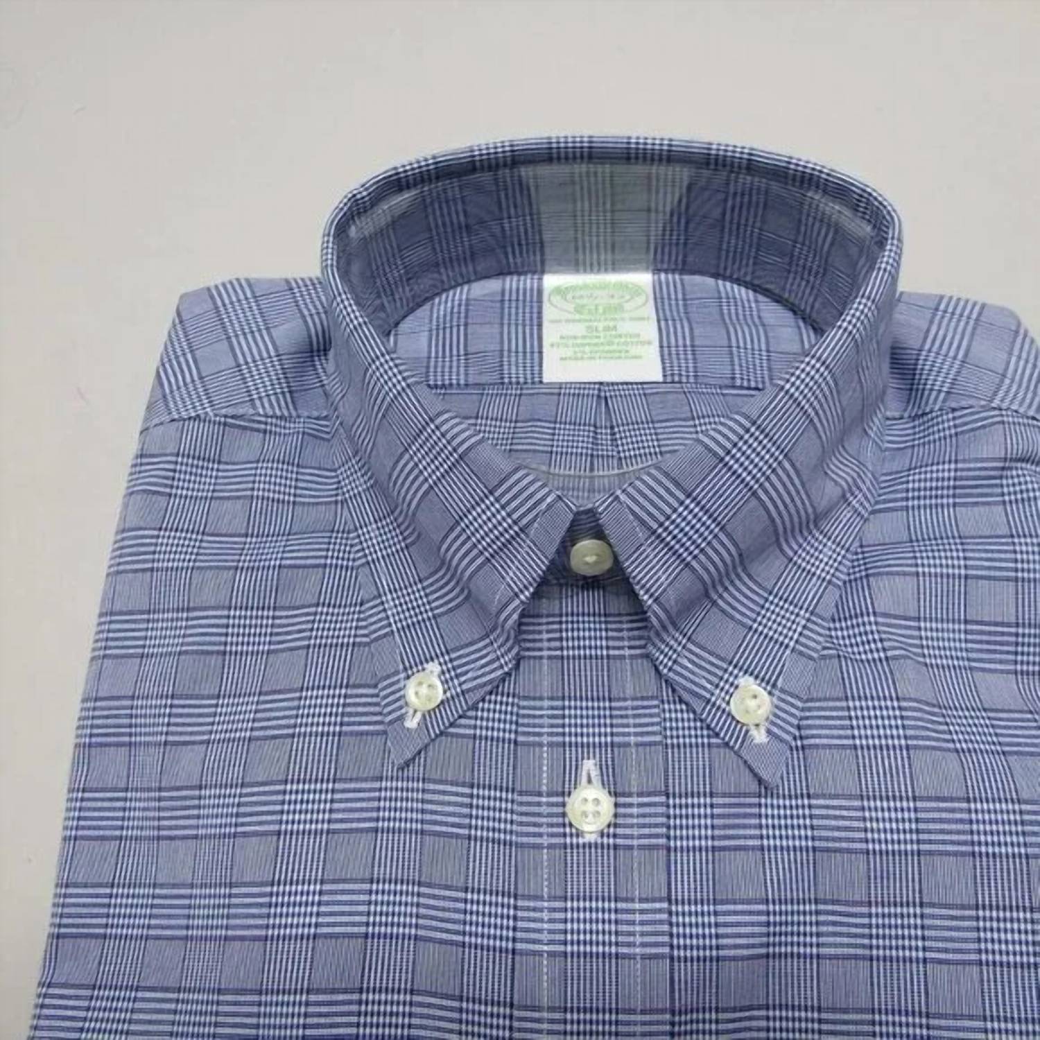 Elevate your style with the Men's Non-iron Stretch Long Sleeve Shirt by Brooks Brothers, a perfect blend of sophistication and comfort. Crafted from a 97% Supima Cotton and 3% Spandex blend, this cotton shirt features a timeless blue check pattern and comes from Thailand. Showcasing long sleeves and a button-down collar, it pairs effortlessly with trousers or jeans, ideal for work and travel. Closure: Button closure. Care instructions: Machine wash. Designed with practicality in mind, this shirt includes a convenient pocket.