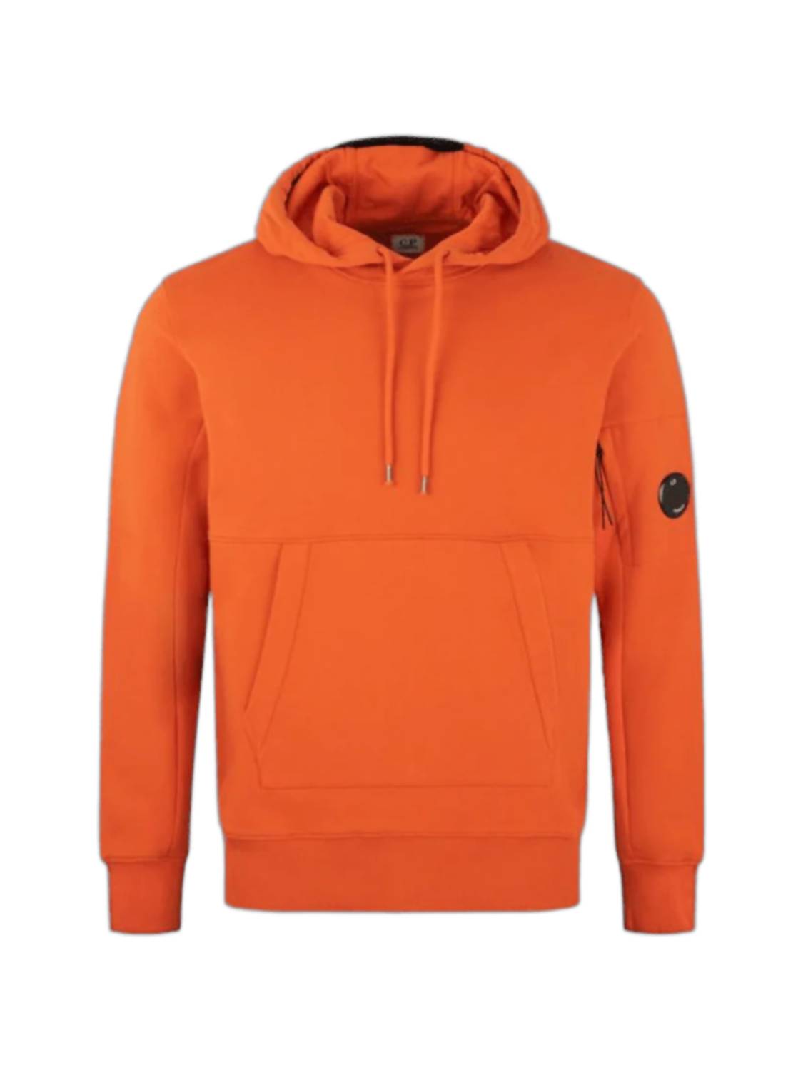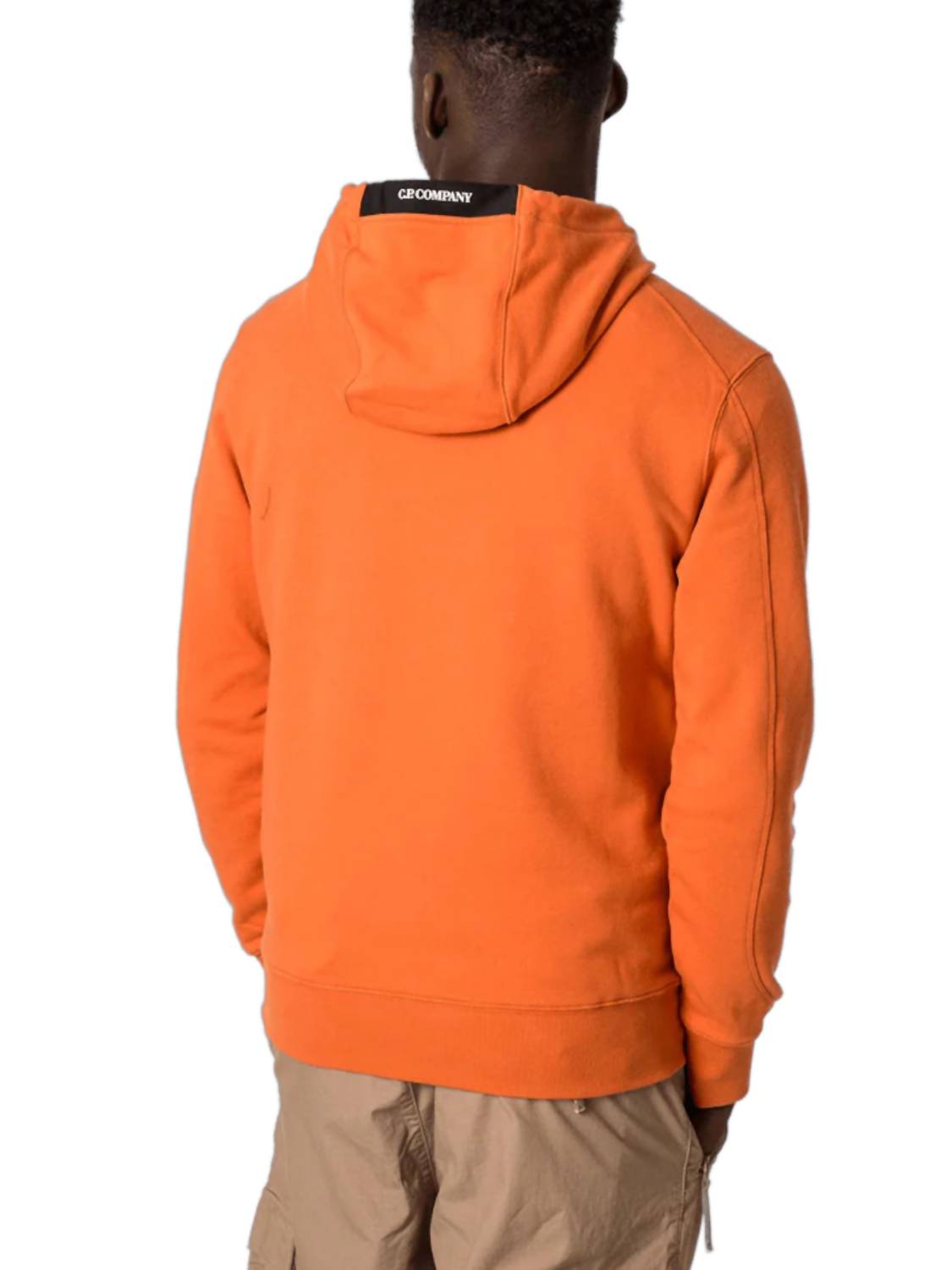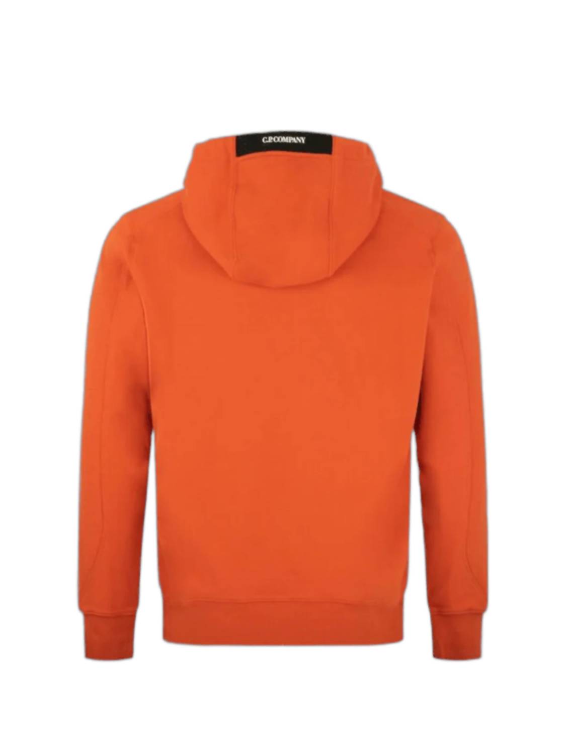 Introducing the Hooded Sweatshirts by C.P. Company, a stylish and comfortable addition to your fall wardrobe in the striking 'Harvest Pumpkin' colorway. Crafted from C.P. Company's diagonal raised fleece, a midweight loopback cotton fabric, this hoodie ensures both durability and comfort. It features long sleeves, a zip-fastened sleeve pocket with the iconic C.P. Company lens detail, and convenient kangaroo pouch pockets. With pull-on closure and adjustable drawstring hood, this hoodie combines functionality with minimalist style for any holiday party occasion. Model wears a medium (6ft/182.88cm).