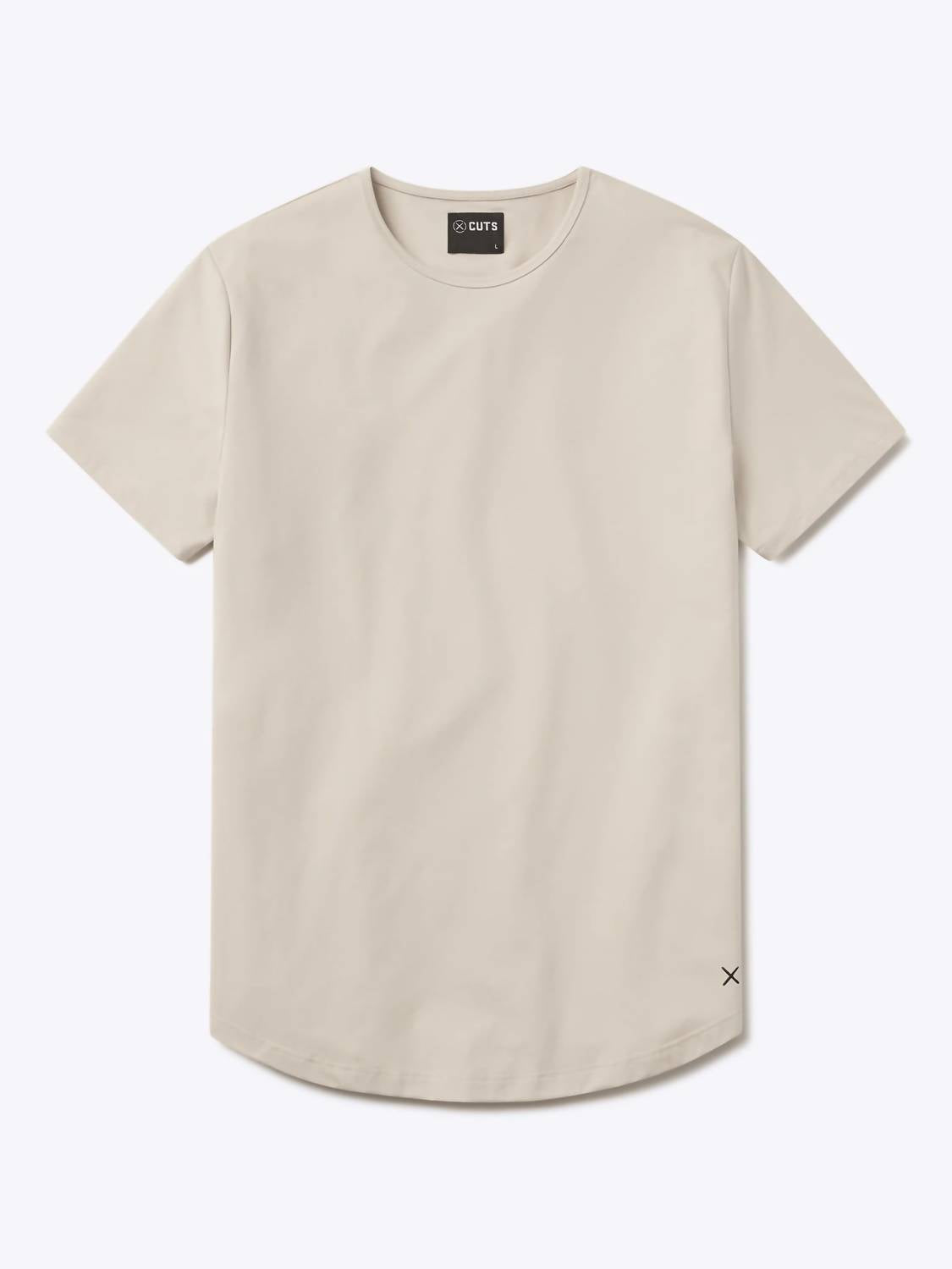 Elevate your everyday wardrobe with the Cuts Curve-Hem Tee by CUTS, crafted for the modern professional who is "Always On." This short sleeve essential in Clay features a Signature-Fit that contours the chest and shoulders with a sleek taper through the waist, perfect for a tailored silhouette. Made from the innovative PYCA Pro® fabric, it remains wrinkle-resistant and soft, maintaining its shape over time. With a classic crewneck and a versatile curve-hem length between the waist and hip, this pull-on design is ideal for minimalist trends and dinner parties alike.