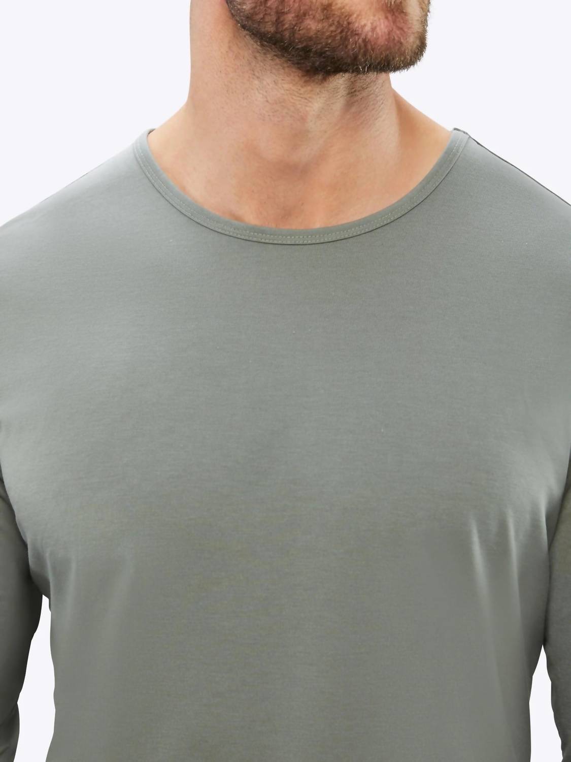 Elevate your style with the CUTS Long Sleeve Curve-Hem Tee in a refined Sage hue, perfect for any setting from work to a weekend getaway. Emphasizing comfort and design, this tee features a fitted crewneck and long sleeves crafted from premium cotton, embodying a minimalist look. With its Signature-fit, it comfortably tapers from chest to waist, complemented by a unique Curve-Hem to eliminate hip bunching. Closure: Pull on. Care: Machine wash and tumble dry. Ideal for the trendy minimalist man, this tee is meticulously designed to fit like a second skin.