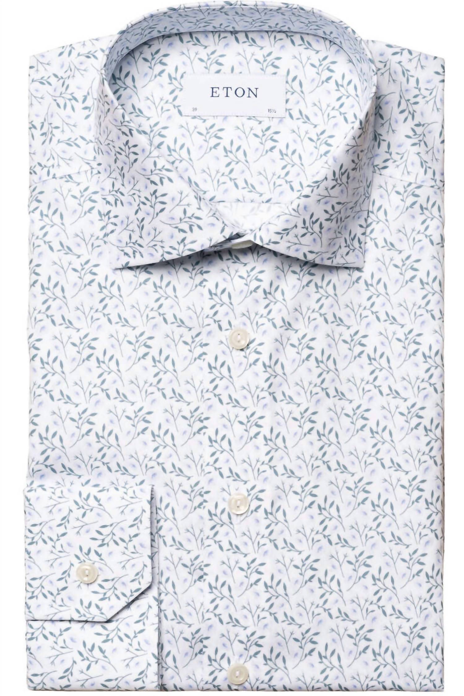 Elevate your wardrobe with the Eton Slim-fit Sport Shirt, a perfect blend of style and functionality in a sophisticated floral pattern. This long-sleeve shirt is crafted from 100% cotton signature poplin, offering a lightweight yet durable feel. It boasts a classic button closure and a sleek collar, embodying minimalist elegance without a breast pocket. Enjoy its easy-care properties that keep it wrinkle-free, and simply machine wash at 30 degrees and line dry for convenience.