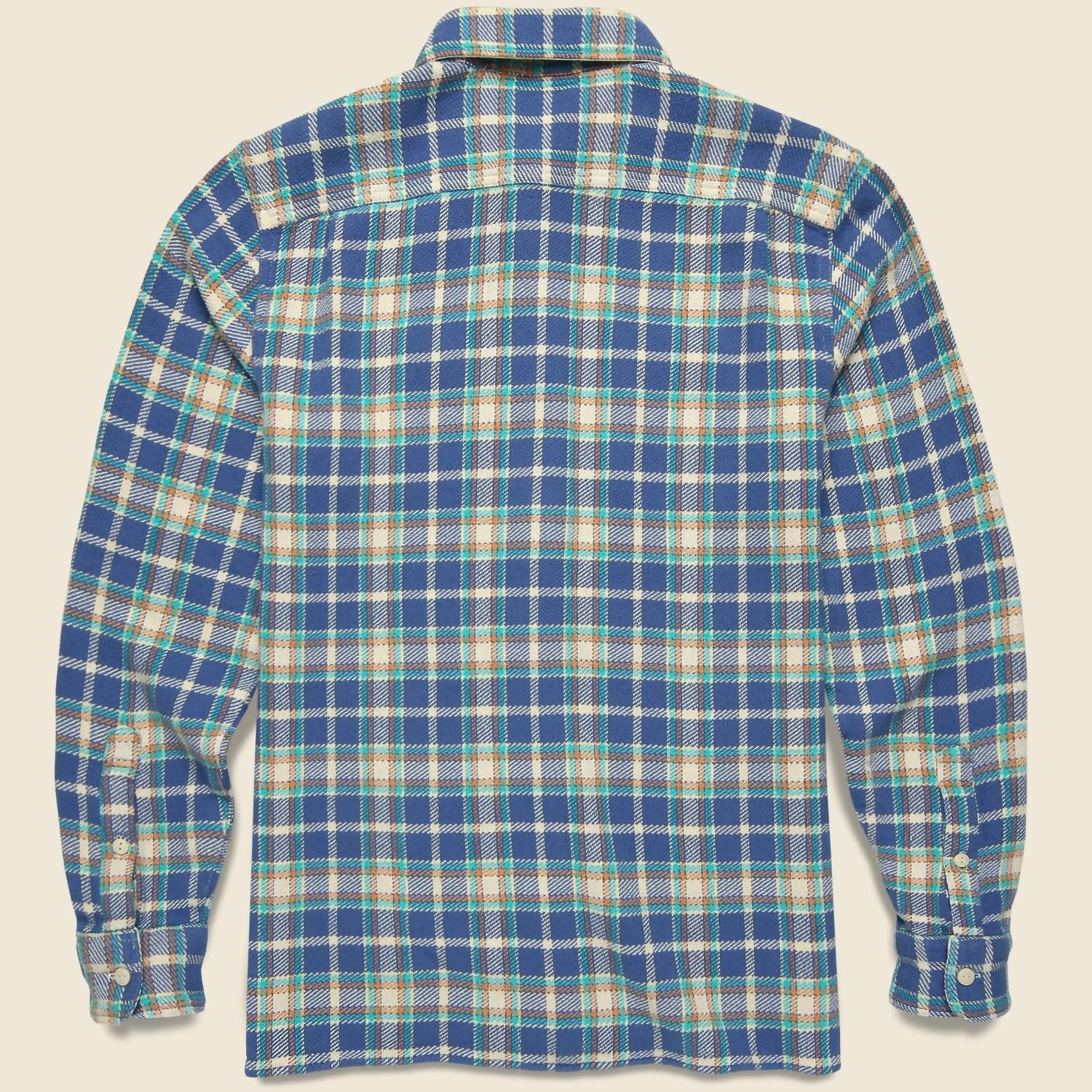 The Men's Surf Flannel Shirt by Faherty offers timeless style in Landing Point Plaid, crafted from lightweight, airy organic cotton for comfort and ease. This long sleeve shirt boasts a woven plaid pattern and is adorned with a classic point collar and a straight-cut hem, ideal for layering. It features a button closure and double-needle top-stitching that enhances its durability. Enjoy a perfectly relaxed fit that runs true to size.