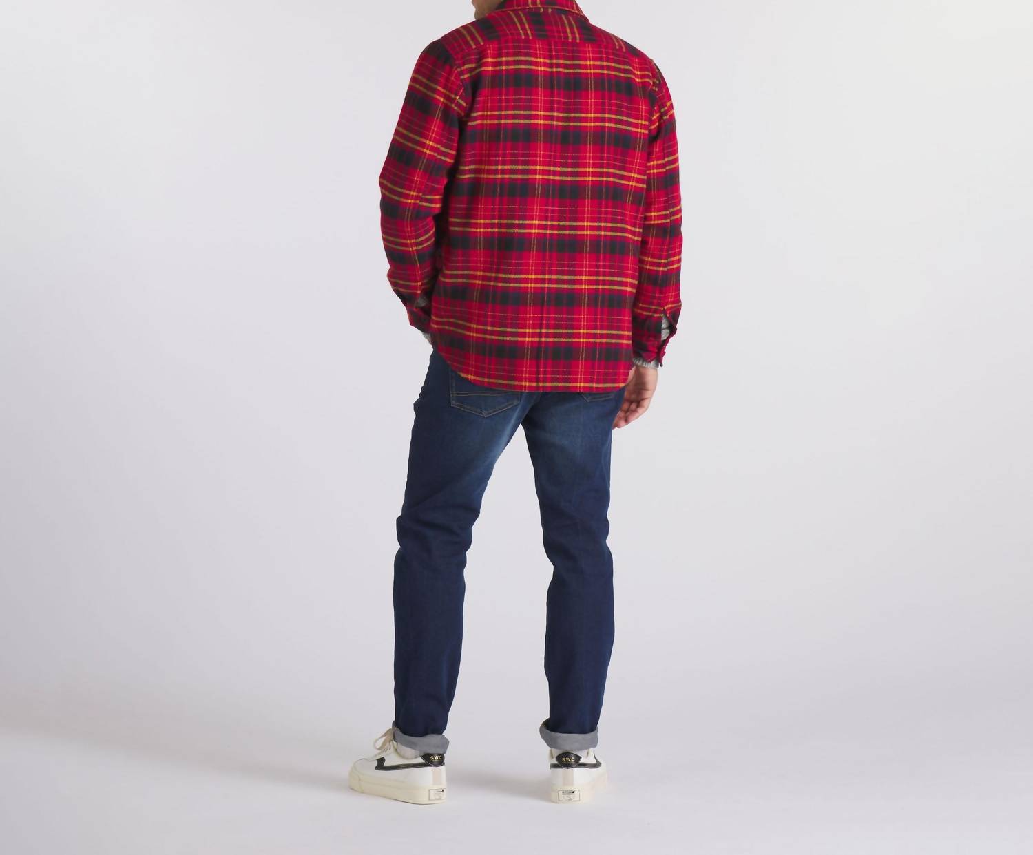 This long-sleeve workshirt features a classic spread collar, military-style flat buttons, and two patch button-through flap pockets for practical style. Crafted from 100% cotton, it combines durability with comfort.