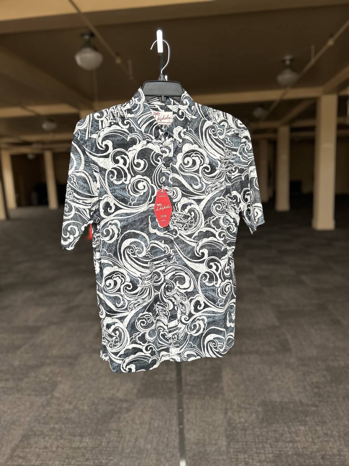 Introducing the Surf Catch Short Sleeve Shirt by Kahala, a must-have for your summer wardrobe. Crafted for a minimalist style, this patterned button-down features short sleeves and a classic collar, perfect for warm vacation days. It comes in a sleek black hue, and its effortless design suits any casual outing. Closure: Button closure. Ideal for Father's Day gifting.