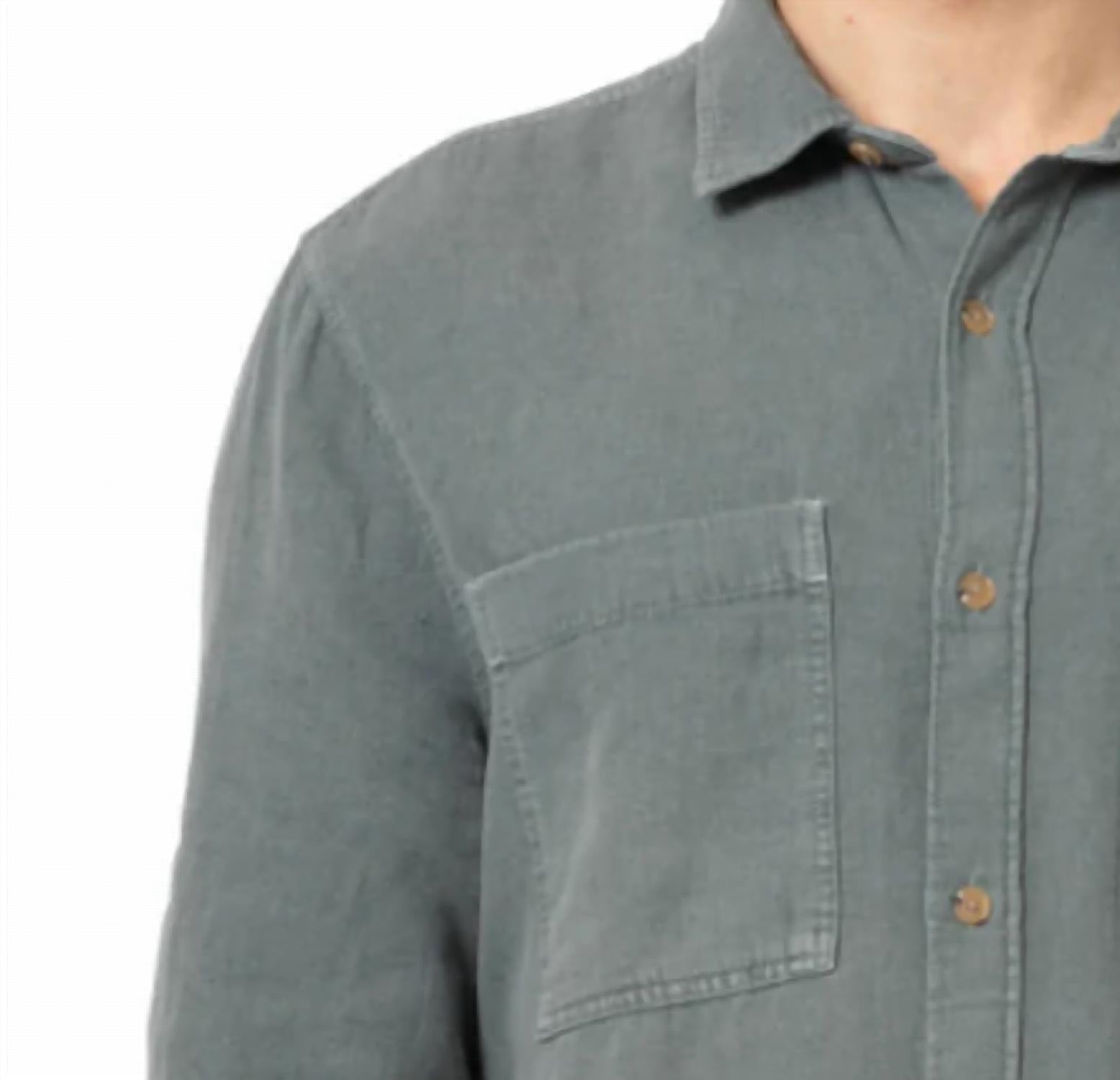 Elevate your wardrobe with the Men's Linen Blend Shirt by Mavi, a staple for year-round style in a versatile solid green. This long sleeve shirt is crafted from a comfortable linen blend and features a practical double chest pocket. It is designed with a classic collar and a convenient button closure. Ideal for a fall transition or any season, this piece is a must-have for sophisticated layering.
