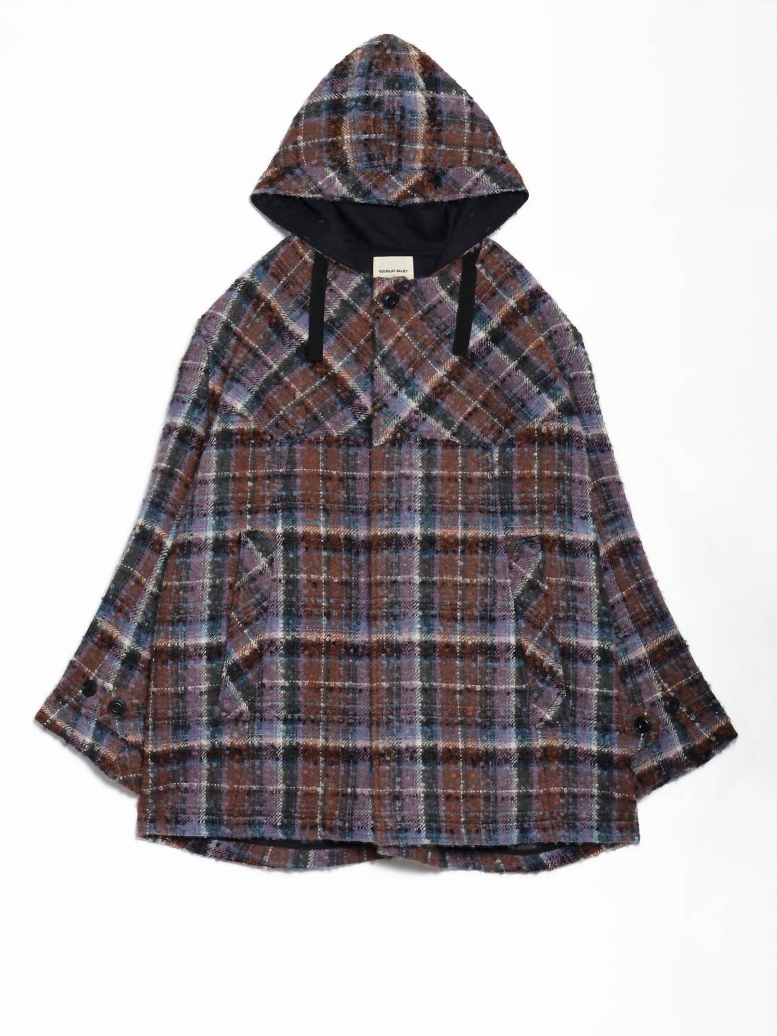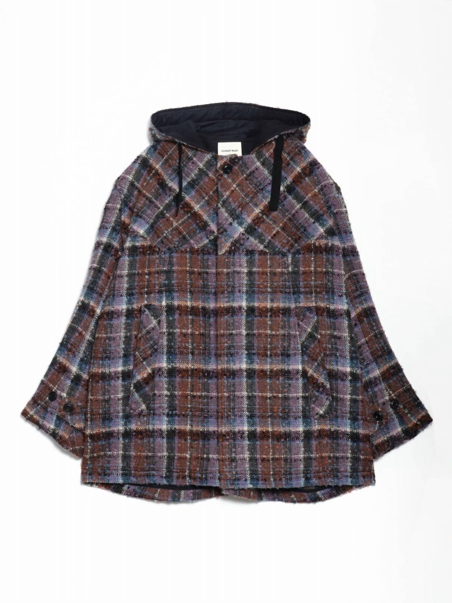 This parka is crafted from bespoke Scottish pressed mohair loop fabric, offering a luxurious texture and structured silhouette. It features two front pockets for practicality, with the main fabric made from 100% wool and a lining of 100% cotton, combining warmth, comfort, and refined detailing.