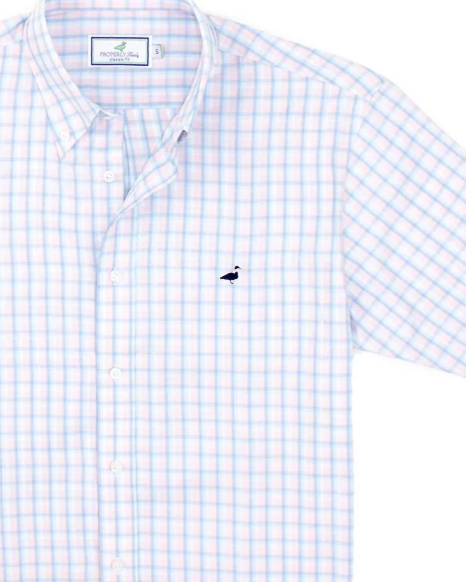 Embrace the vibrant spirit of summer with the Men's Seasonal Sportshirt by Properly Tied, presented in a striking Sunrise gingham pattern. Designed with short sleeves and a classic collar, this sportshirt embodies a relaxed yet stylish vibe for any vacation or Easter gathering. Closure: Button closure. Ideal for adding a maximalist touch to your casual wardrobe.