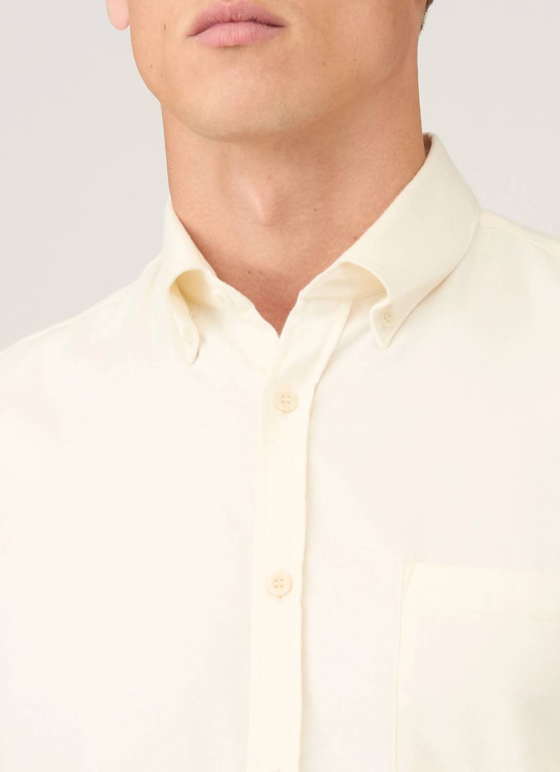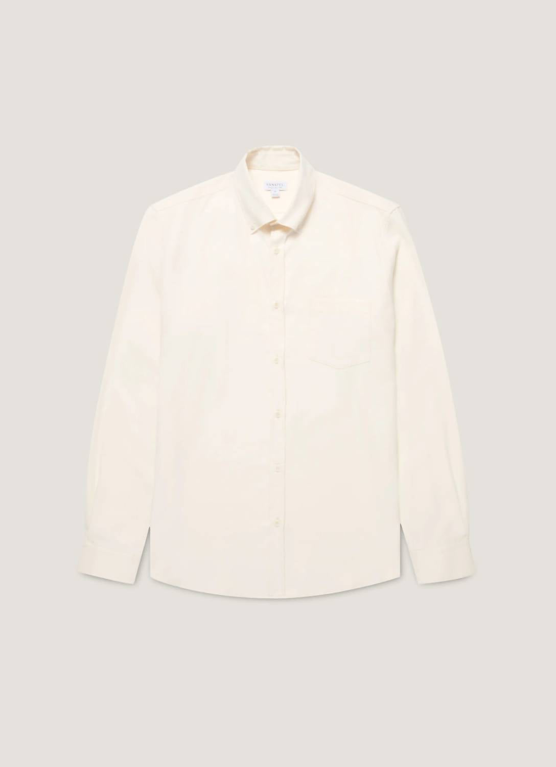 Introducing the Sunspel Brushed Cotton Flannel Shirt in sophisticated Ecru, a quintessential piece for any wardrobe. This men's casual button-down shirt combines luxury and comfort with long sleeves and a button-down collar, crafted from 100% Italian-woven brushed cotton flannel. Designed in a regular fit, this shirt includes a practical patch pocket and is made in Portugal. With a solid pattern and refined finish, it's an ideal choice for a spring holiday party. Closure: Button closure.