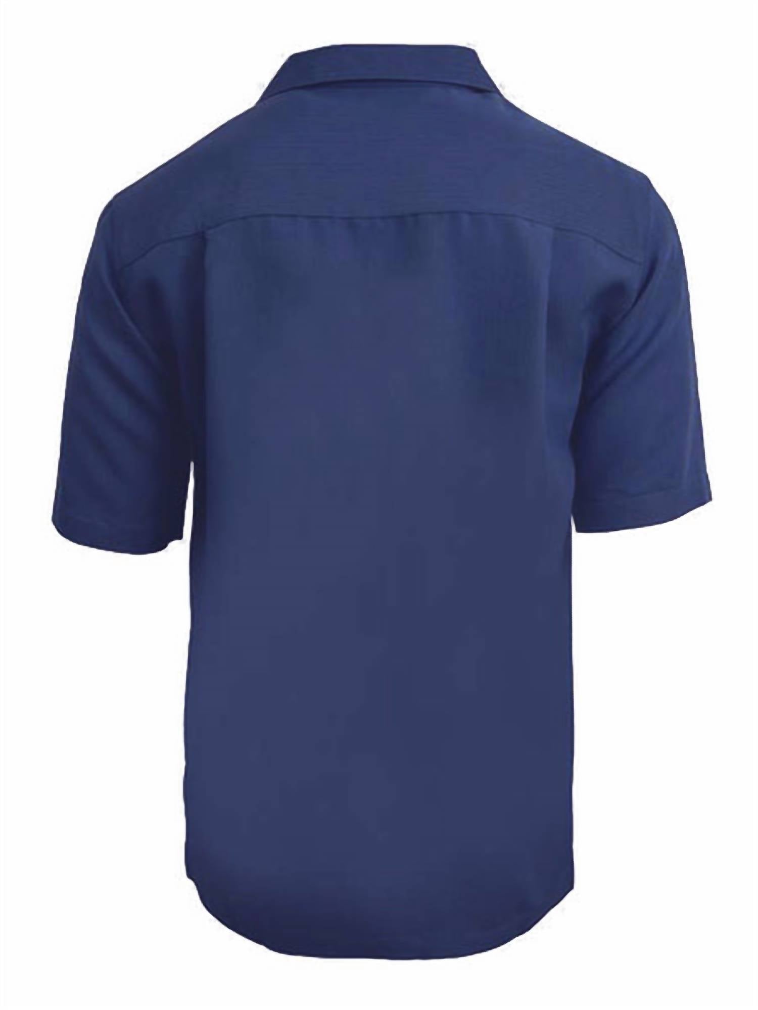 The Weekender Men's Hawaiian Bungalow Shirt in sleek black offers a perfect blend of style and function for a sophisticated beach day. This short-sleeve shirt is crafted from a super soft 62% Viscose and 38% Polyester blend, providing UPF 50 sun protection. It's designed with a spread collar, button-thru front pocket, and features a square hem with side vents, allowing versatility in how it's worn. Closure: Button closure.
