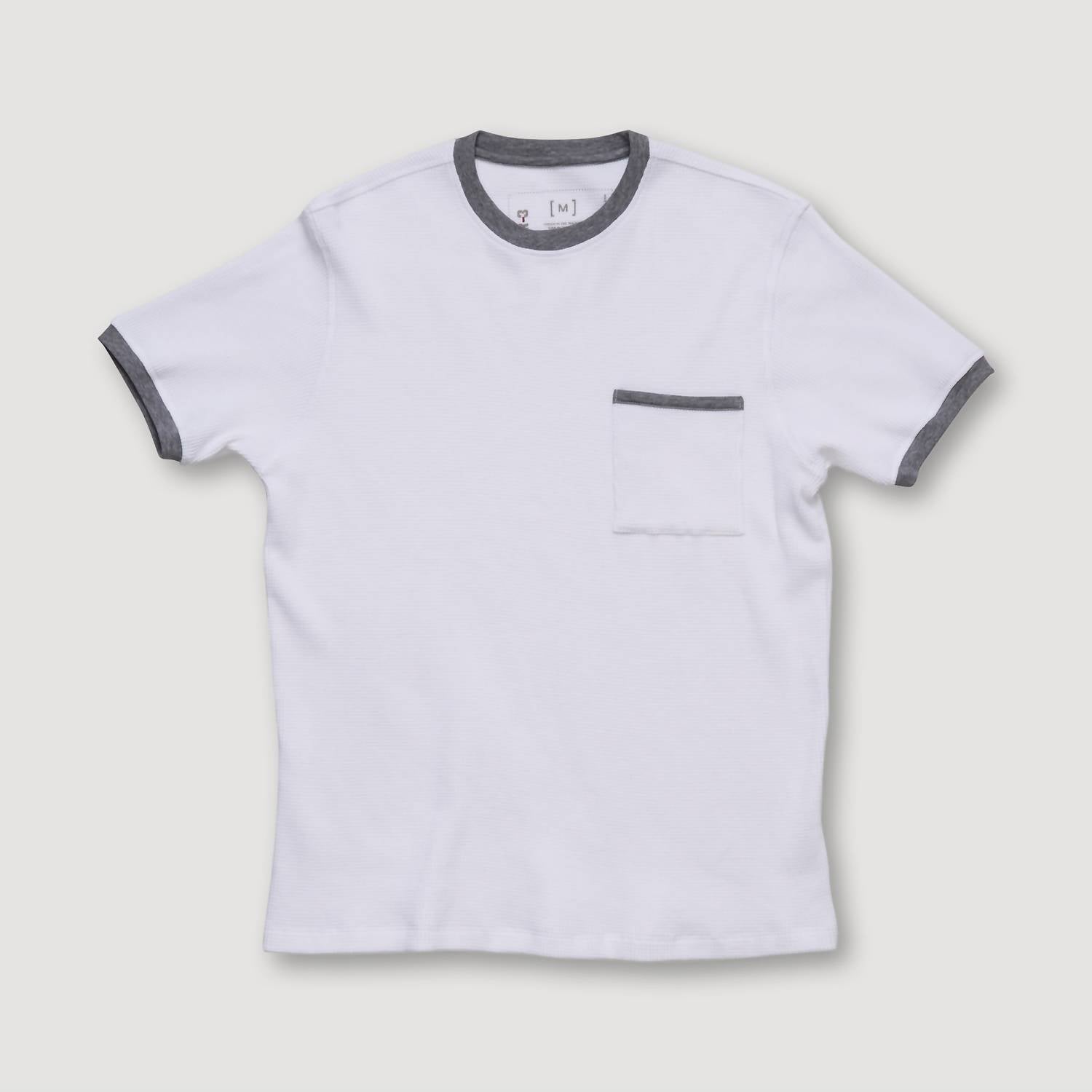Featuring short sleeves and a classic crewneck, this tee is crafted from 100% cotton with a soft wash finish, offering a textured touch that nods to 1950's drive-in vibes. The pull-on design in a crisp white hue allows for ease and versatility, complemented by practical pocket detailing.